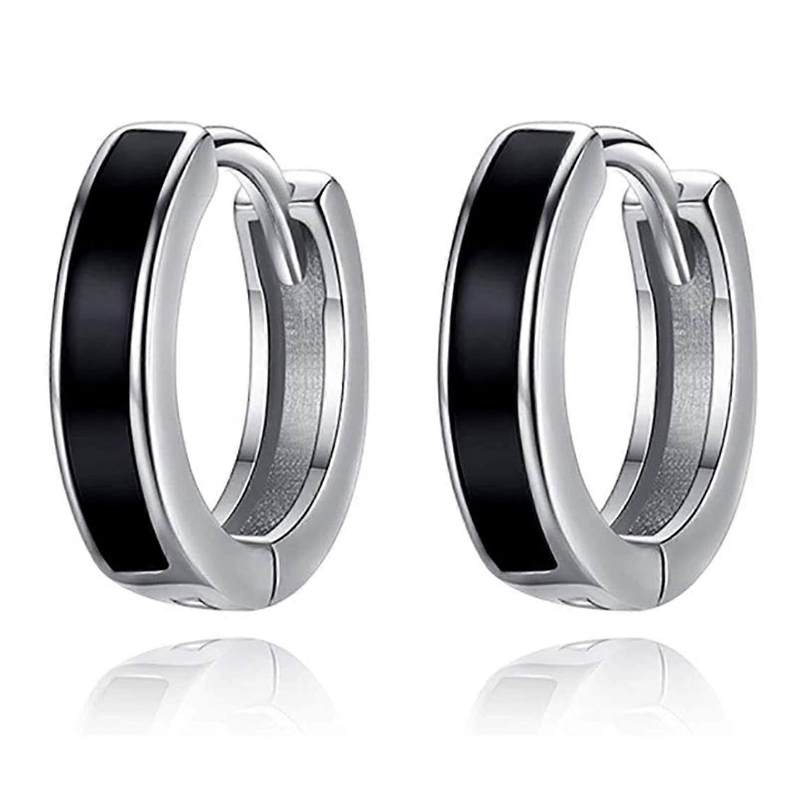 Black Hoop Earrings for Women Men 925 Sterling Silver Hypoallergenic Huggie Hoop Earrings for Sensitive Ears