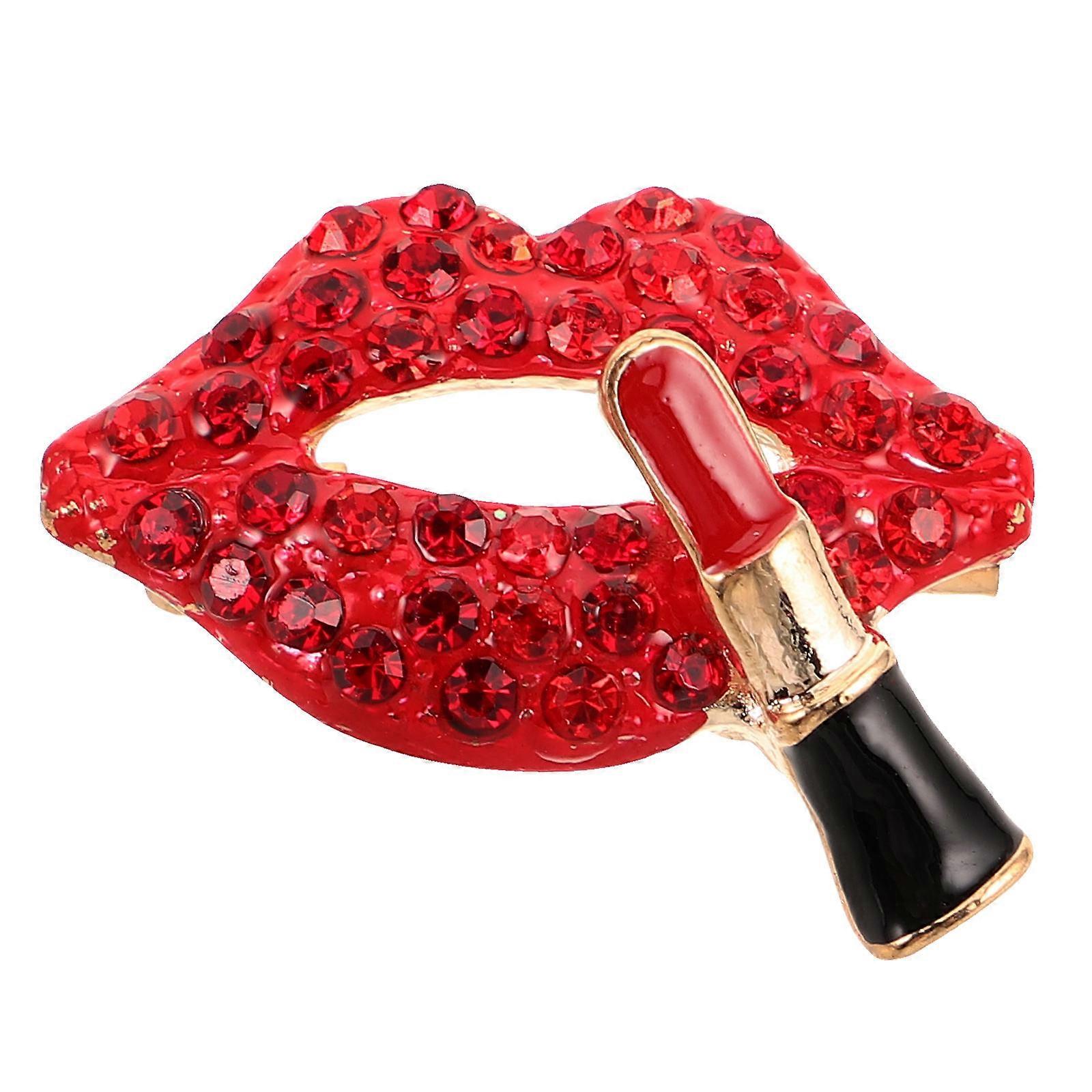 Brooches For Women Rhinestone Inlaid Lip Shape Red Zinc Alloy Decorative Item Suit Scarf Hat Backpack 1Pack