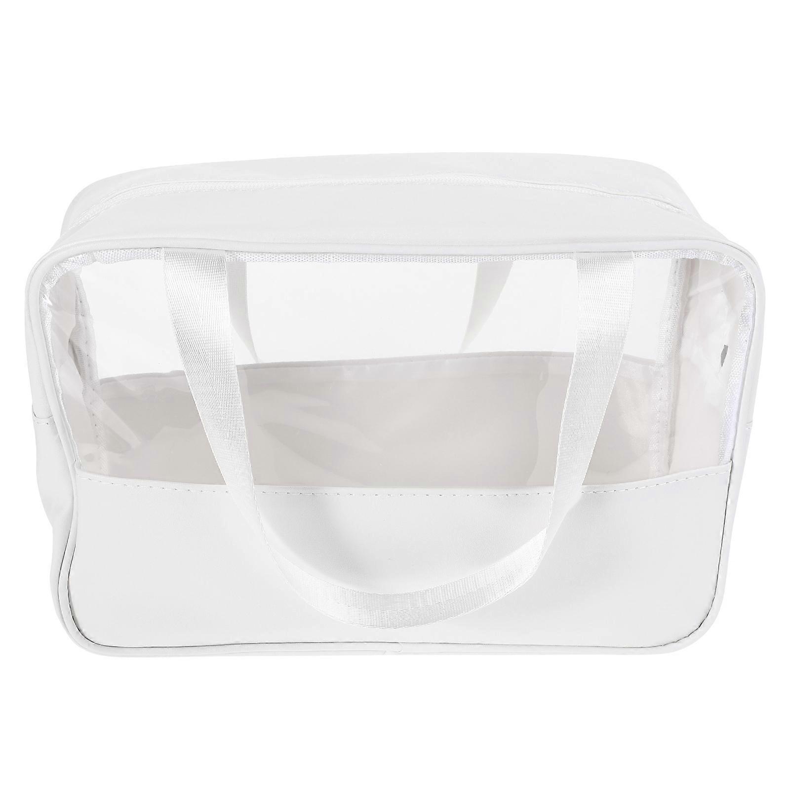 The bag features multiple compartments and pockets, providing ample space to organize your items efficiently. The splashproof material allows that your stay dry and protected, even in humid environments. This versatile bag can be used for storing makeup, toiletries, and other personal items, making it a must-have for any traveler. Features - Color: White -Material:PU leather, PVC - Size: 30.00X21.50X10.00cm/11.79X8.45X3.93in -Spacious interior: with its large capacity, this travel makeup bag can accommodate numerous beauty products, ideal for travel -Firm: crafted from splashproof fabric, it keeps your safe from water damage -Fashionable patchwork: the stylish patchwork design is both trendy and unique, allowing you -Convenient carry handle: the portable handle makes it easy to transport, you can maintain your beauty routine on the go -Versatile organization: this makeup travel bag features multiple compartments for easy organization and separation of your items Package list: 1 x makeup bag