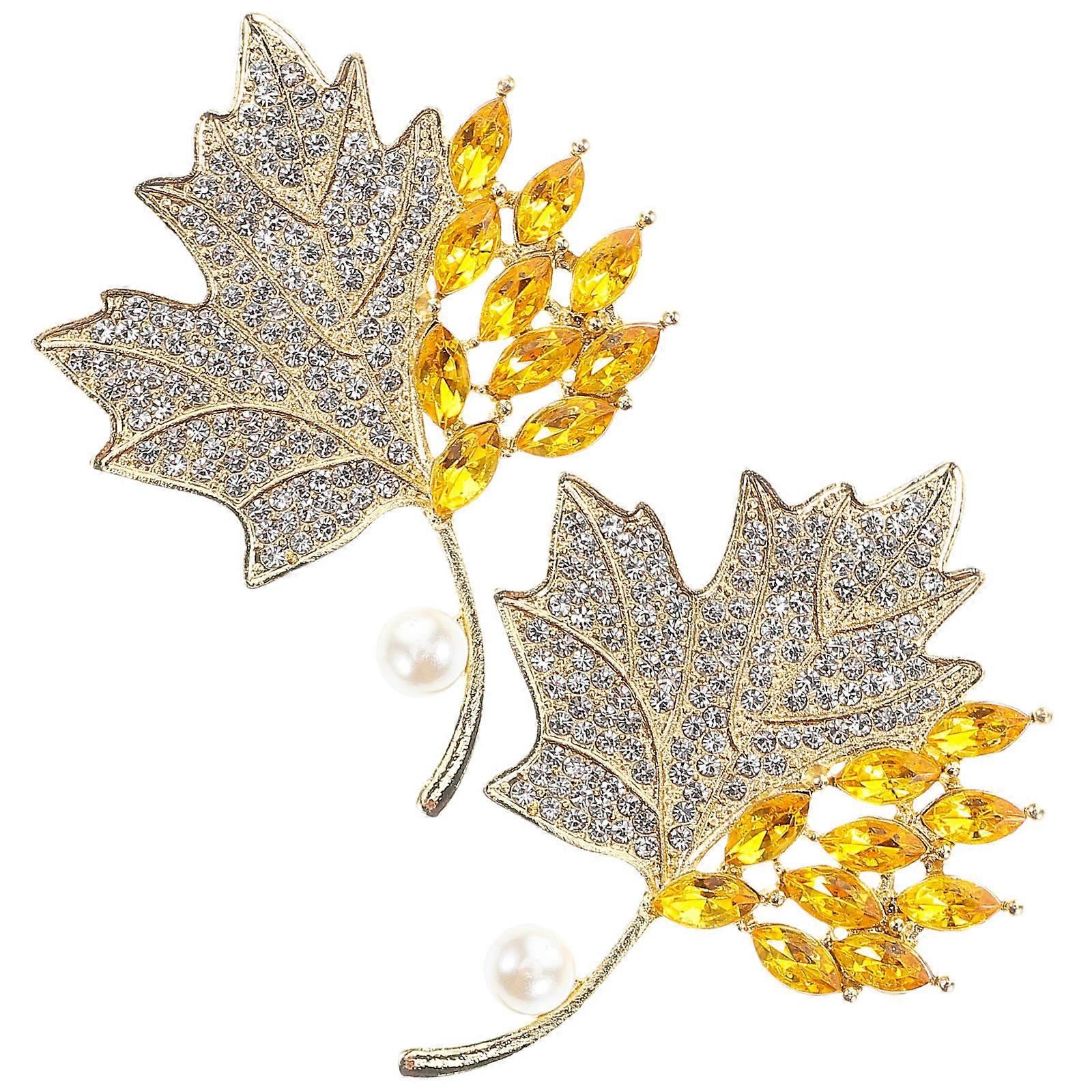 Fashionable Maple Leaf Brooch For Women Golden Color Plating Jewelry Pin For Thanksgiving Party 2Pcs