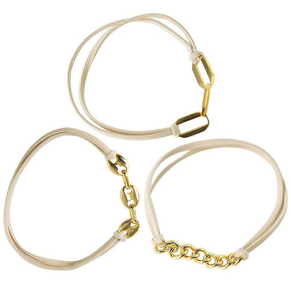 Fashionable Elastic Bracelet Hair Ties for Women Golden Color Rubber Band Metal Decor Accessories