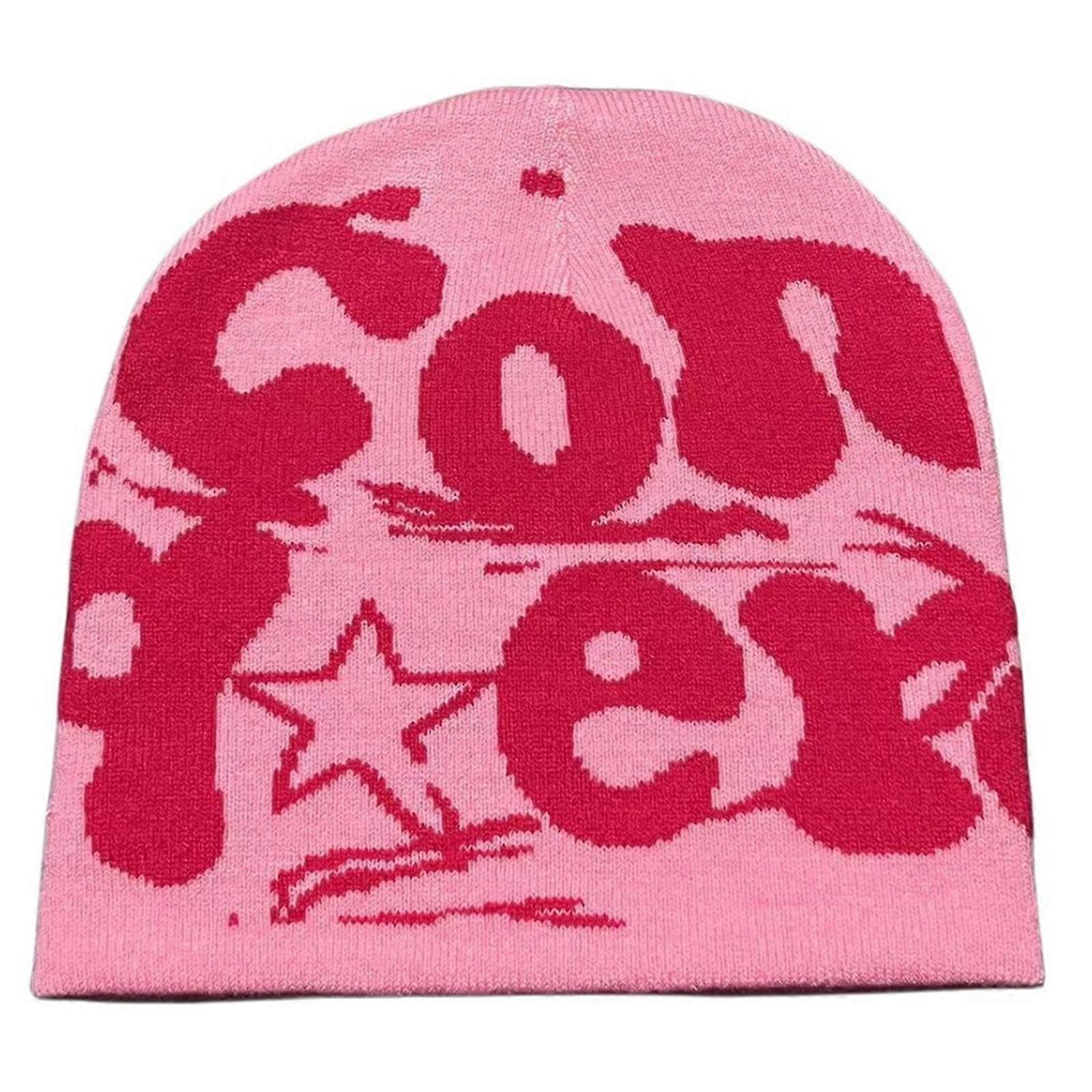 Fashion Letter Beanie Hat for Women Men Comfortable Knit Hat PullOver Cap Girls Y2K Skull Cap Sport Hat Adult Headdress pink rose red letter
