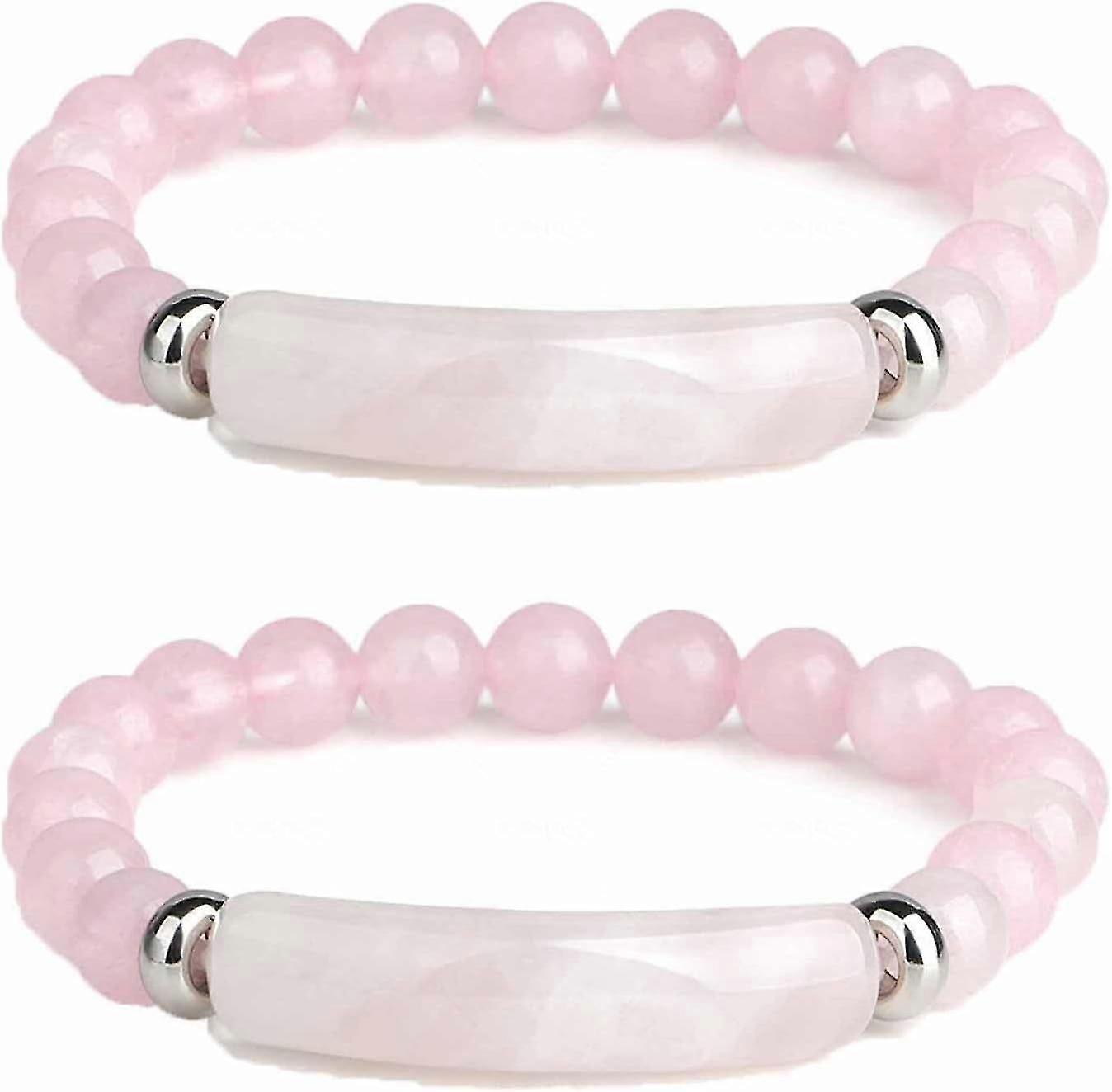 Pheromone Bracelet for Women, Handmade 8mm Healing Crystal Beads Stretch Bracelet Pink Lov