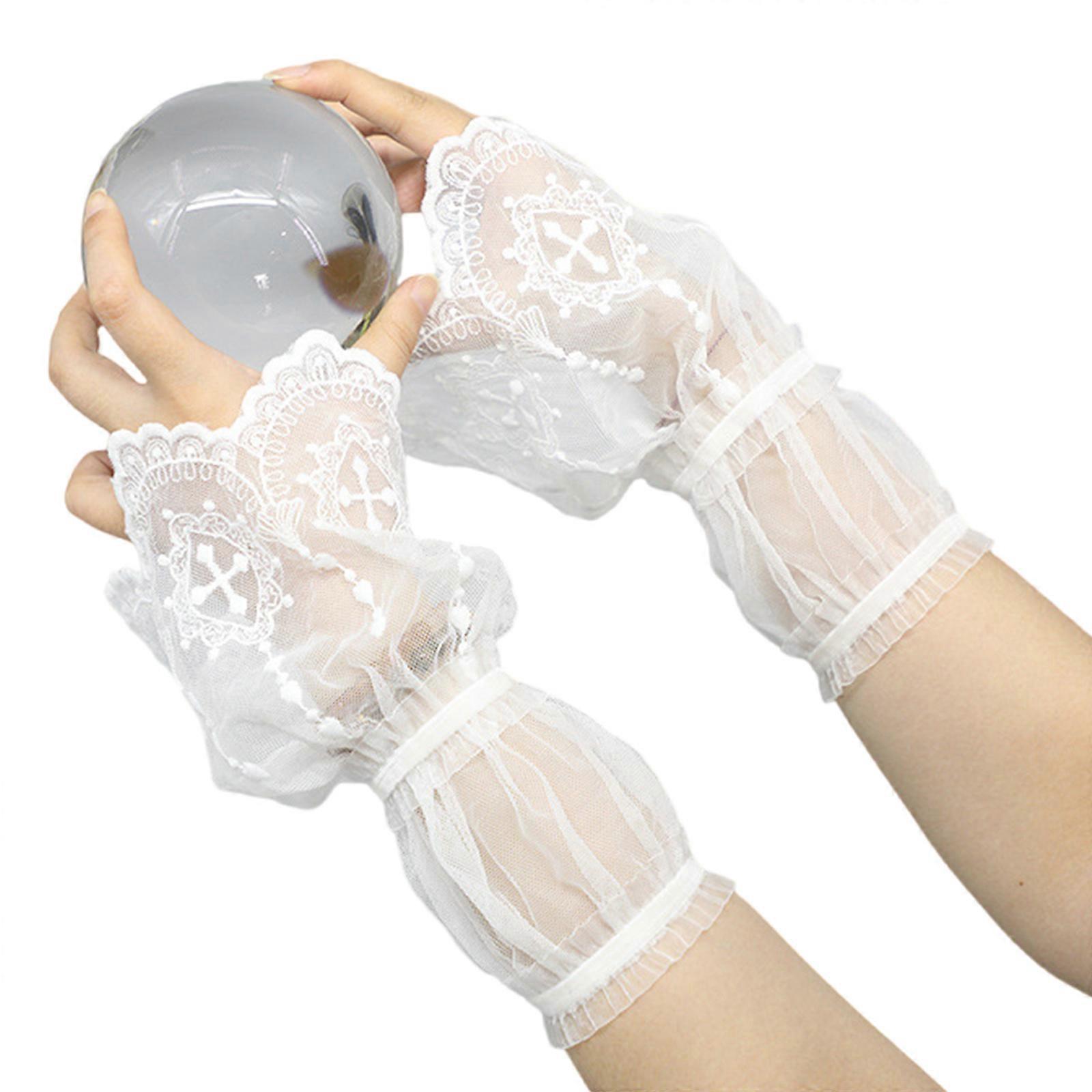 Flared Lace Flower Arm Sleeves for Women Elegant Cuffs Detachable Faux Sleeves Sweater Decorative Cuff 2000s Accessory White