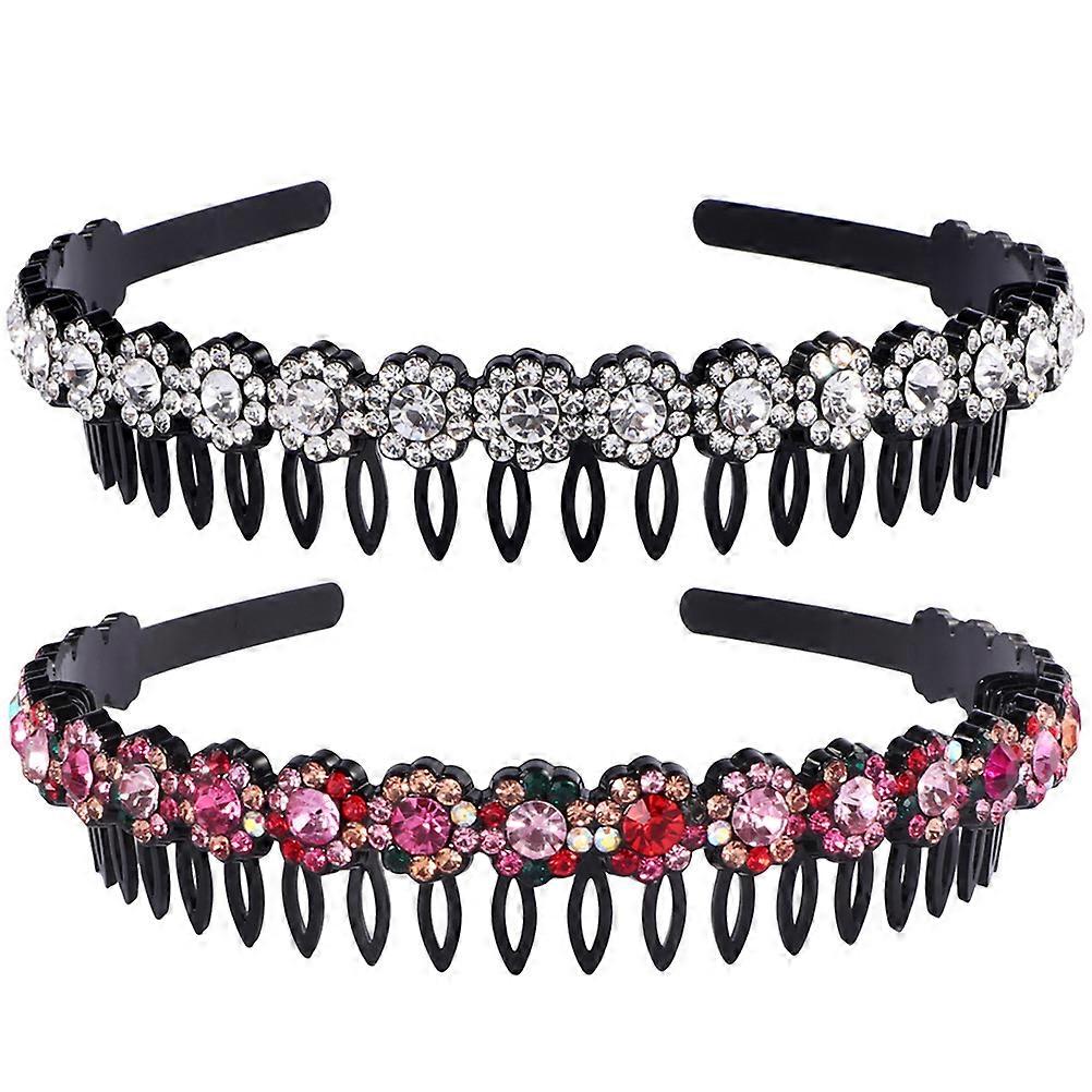 Headbands For Women Fashion Comb Headband Rhinestones Nonslip Hair Fixing Daily Wear 2Pcs