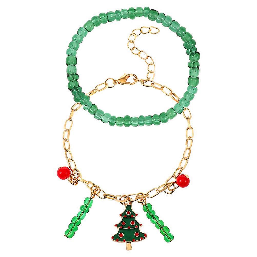 Holiday Jewelry For Women Round Shape Beads Bracelet Christmas Party 9.4 1.6 0.2in 2Pcs