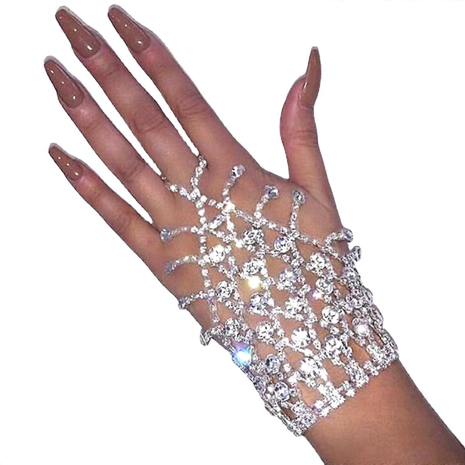 Fashion Tassel for Rhinestone Hand Bracelets for Women Bohemian Crystal Finger Ring Bracelet Bangle Charm Jewelry Silver
