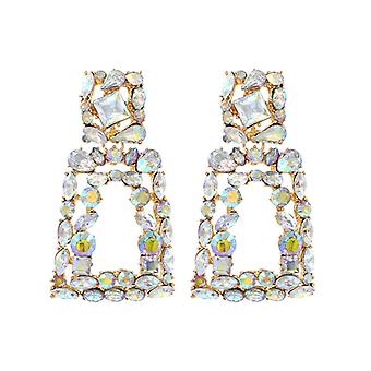 Rhinestone Rectangle Dangle Earrings For Women Sparkly Crystal Geometric Drop Statement Earrings