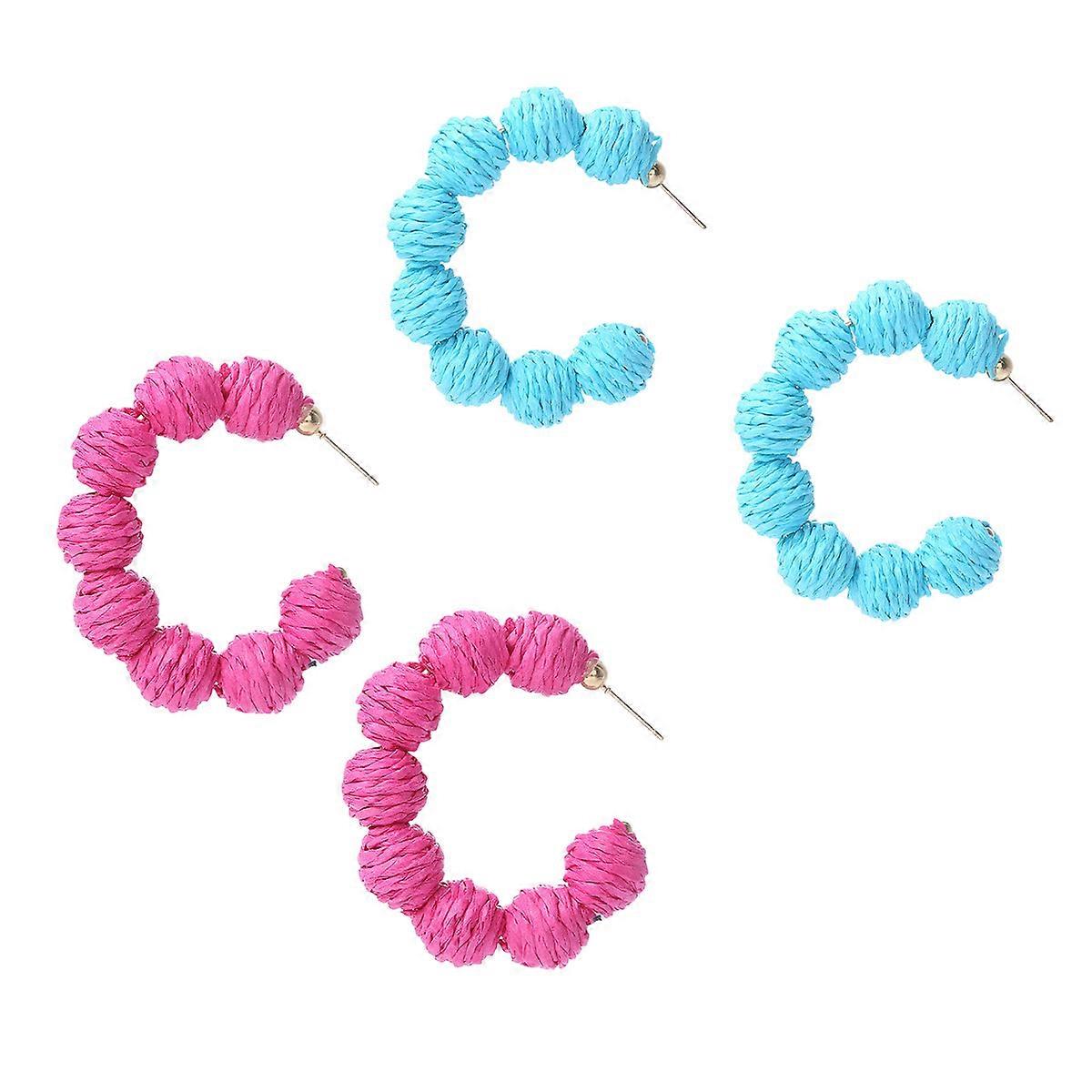 2 pairs of Raffia Earrings for Women Rattan Hoop Earrings Woven Straw Earrings Summer Beach