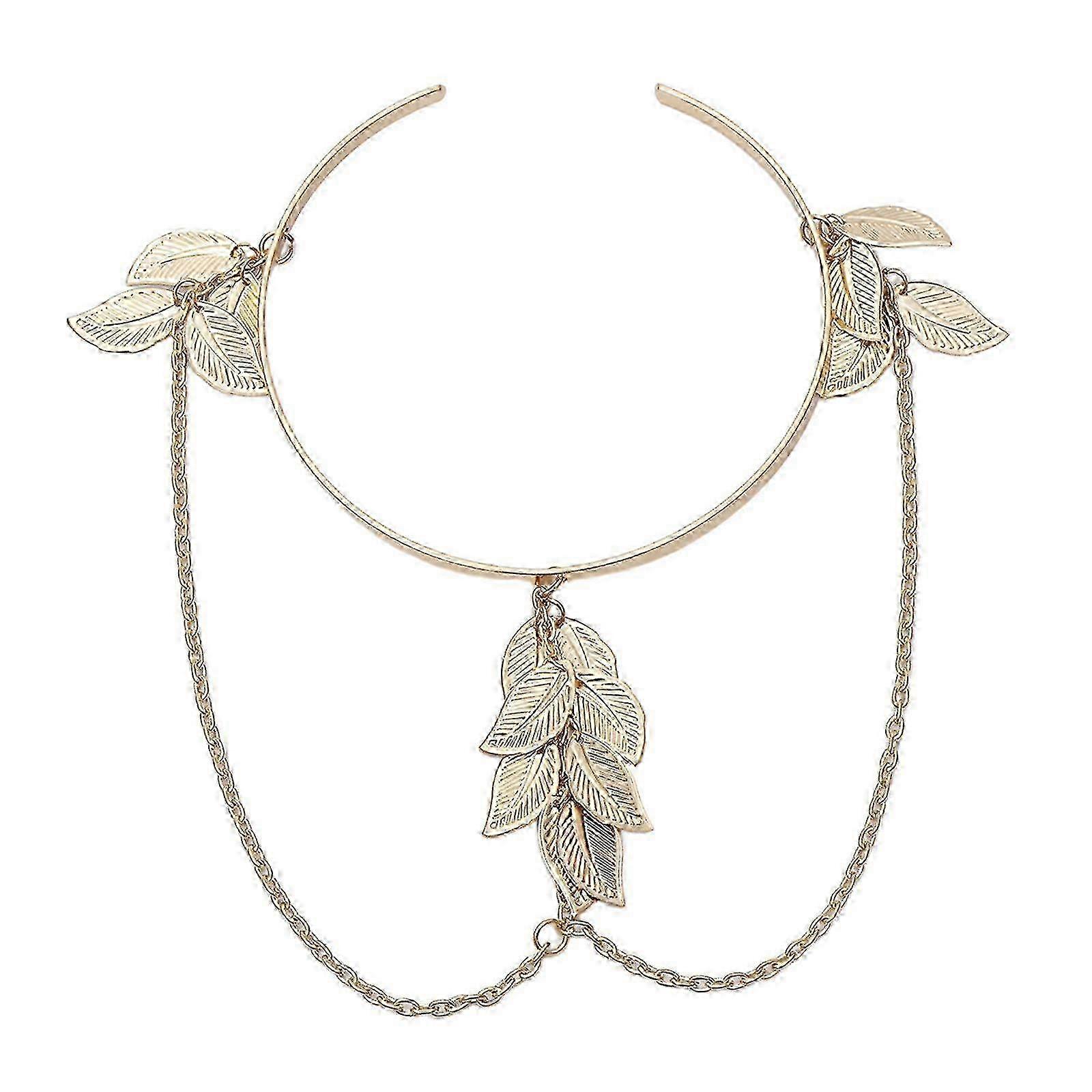Leaf Feather Arm Bracelet Chain for Women Girls Open Upper Arm Bangle Armlet Gold