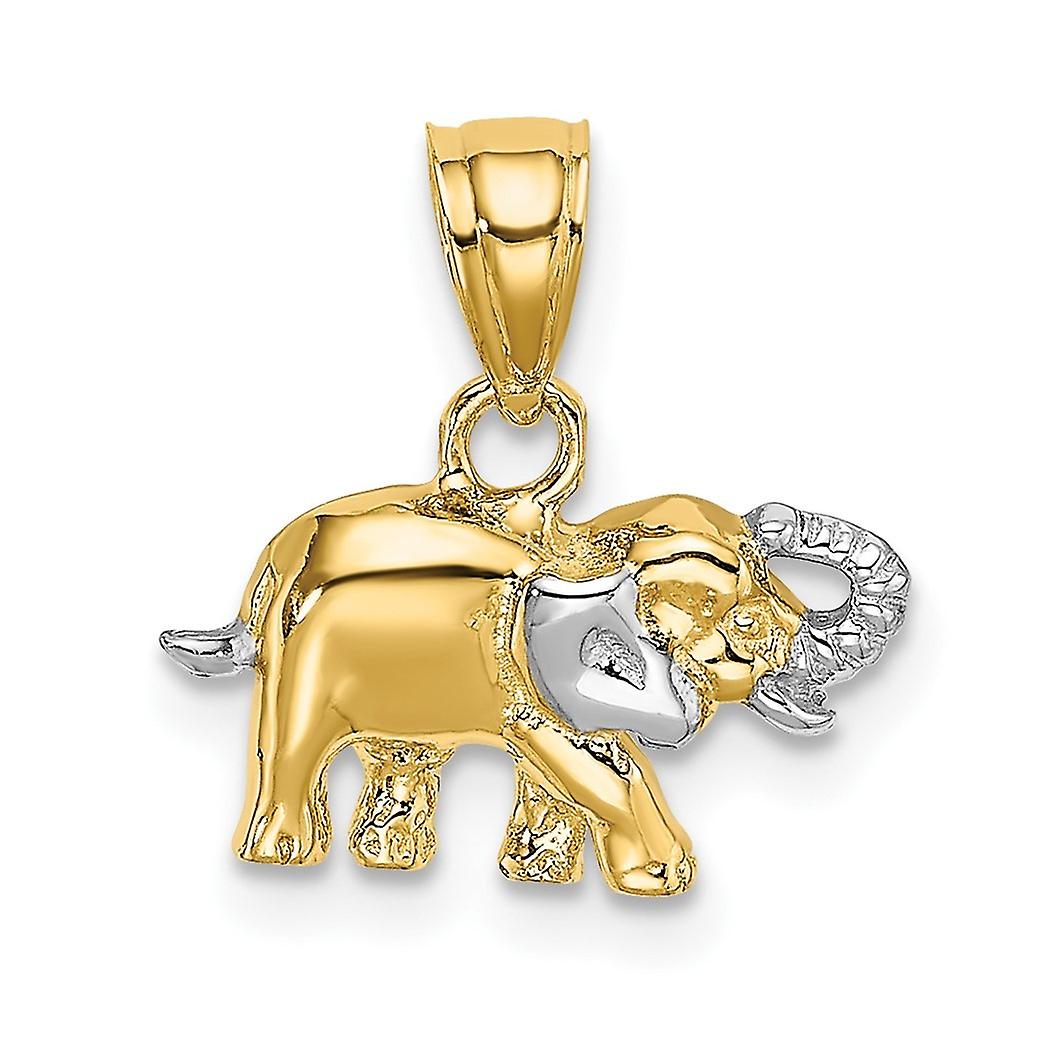 13.66mm 10k With Rhodium Small Elephant Charm Pendant Necklace for Women - .8 Grams