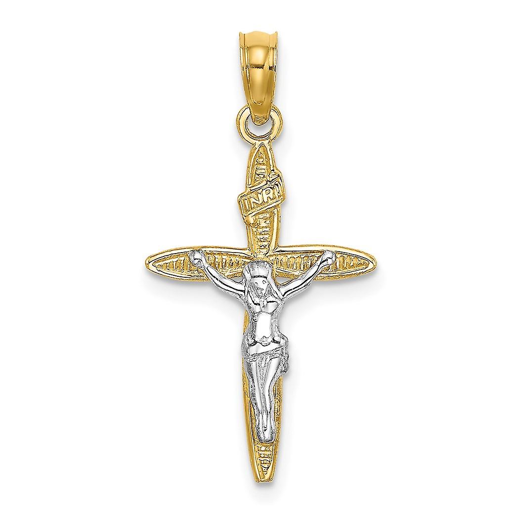 15mm 10k With Rhodium Inri Crucifix Charm Pendant Necklace for Women - .6 Grams