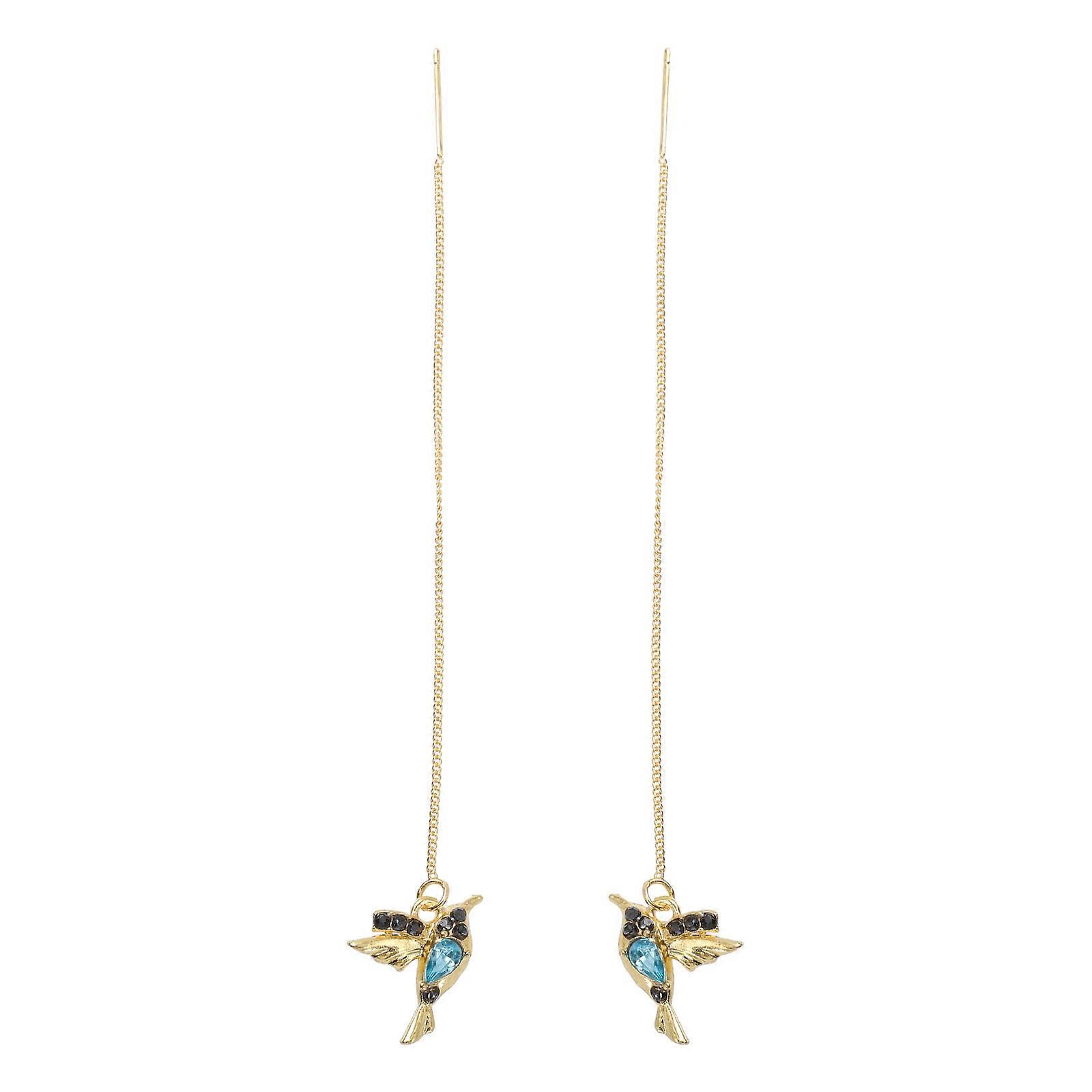 Long Chain Rhinestone Hummingbird Drop Earrings for Women, Vintage Style Bird Jewelry for Nature Lovers