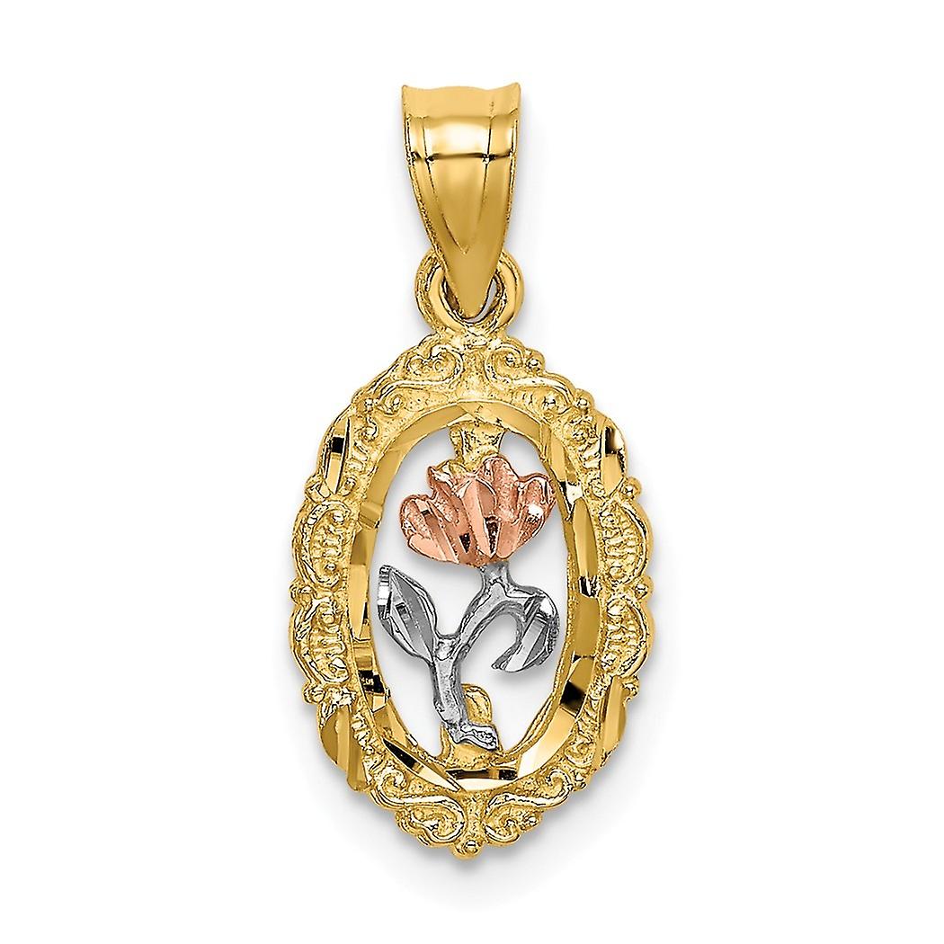 14k Gold Oval With Rose Inside Tri color Charm 17.6mm long Pendant Necklace for Women