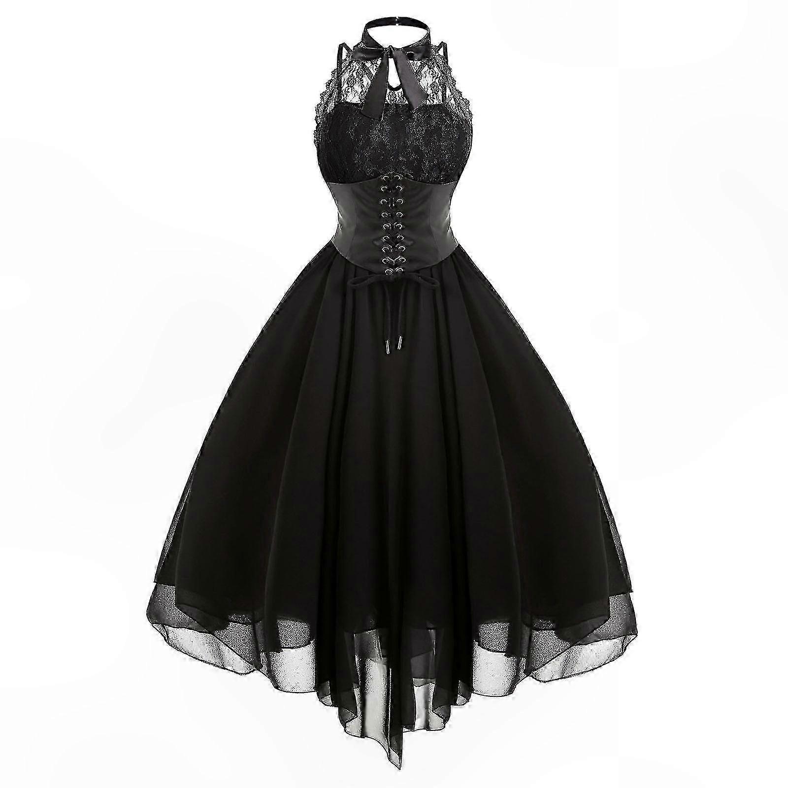 Medieval Lace High-Low Dress for Women, Sleeveless Gothic Design Costume with Steampunk Style