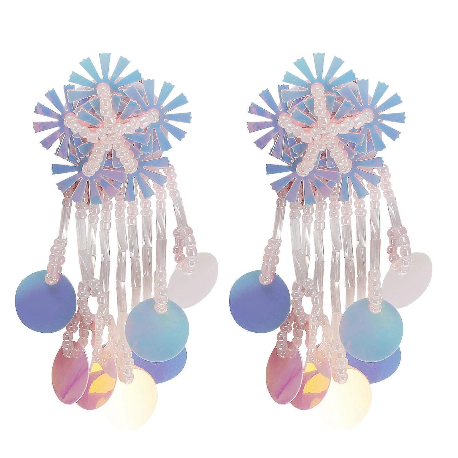 White PVC Tassel Earrings with Shiny Sequin Design for Women Great Party Accessories 1 Pair