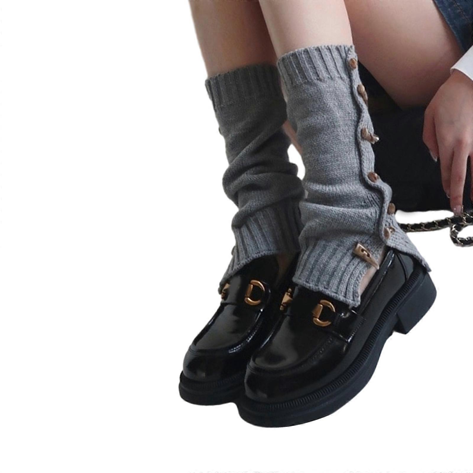 Slouch Loose Flared Leg Warmers for Women Y2K Harajuku Vintage Horn Toggle Button Split Knit Leg Cover Sleeve Long Socks light gray