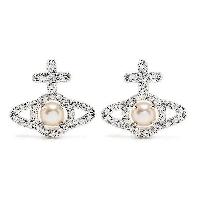 Crosshair Silver Saturn Studded Pearl Earrings For Women High-End Shiny Full Diamond Saturn Earrings