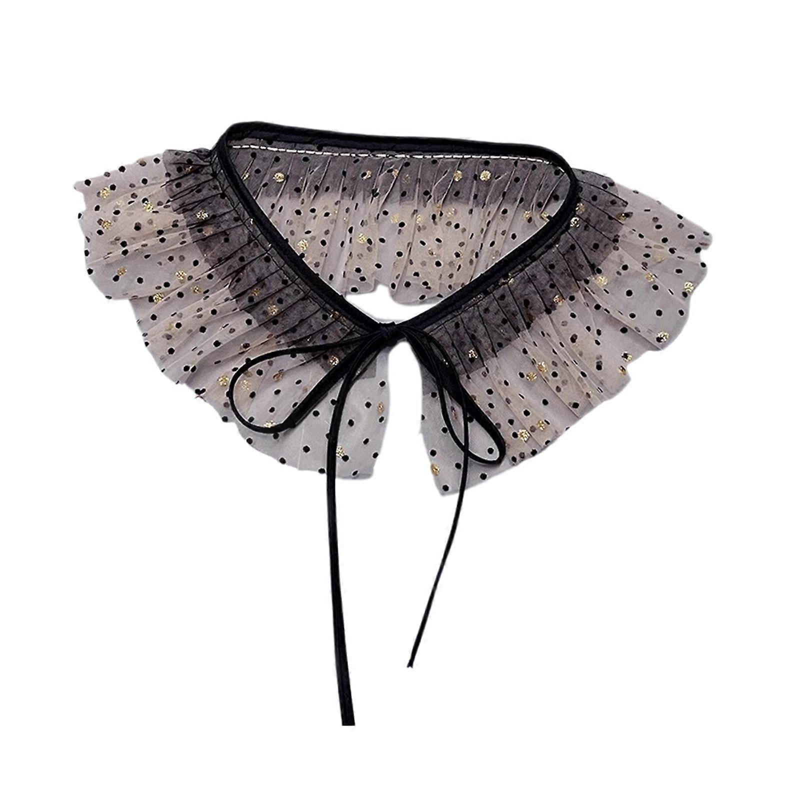Detachable False Collar Neckline for Women Sparkly Dots Sheer Organza Mesh Ruffled Shawl Scarf Wrap Ties Up Mini Capelet
