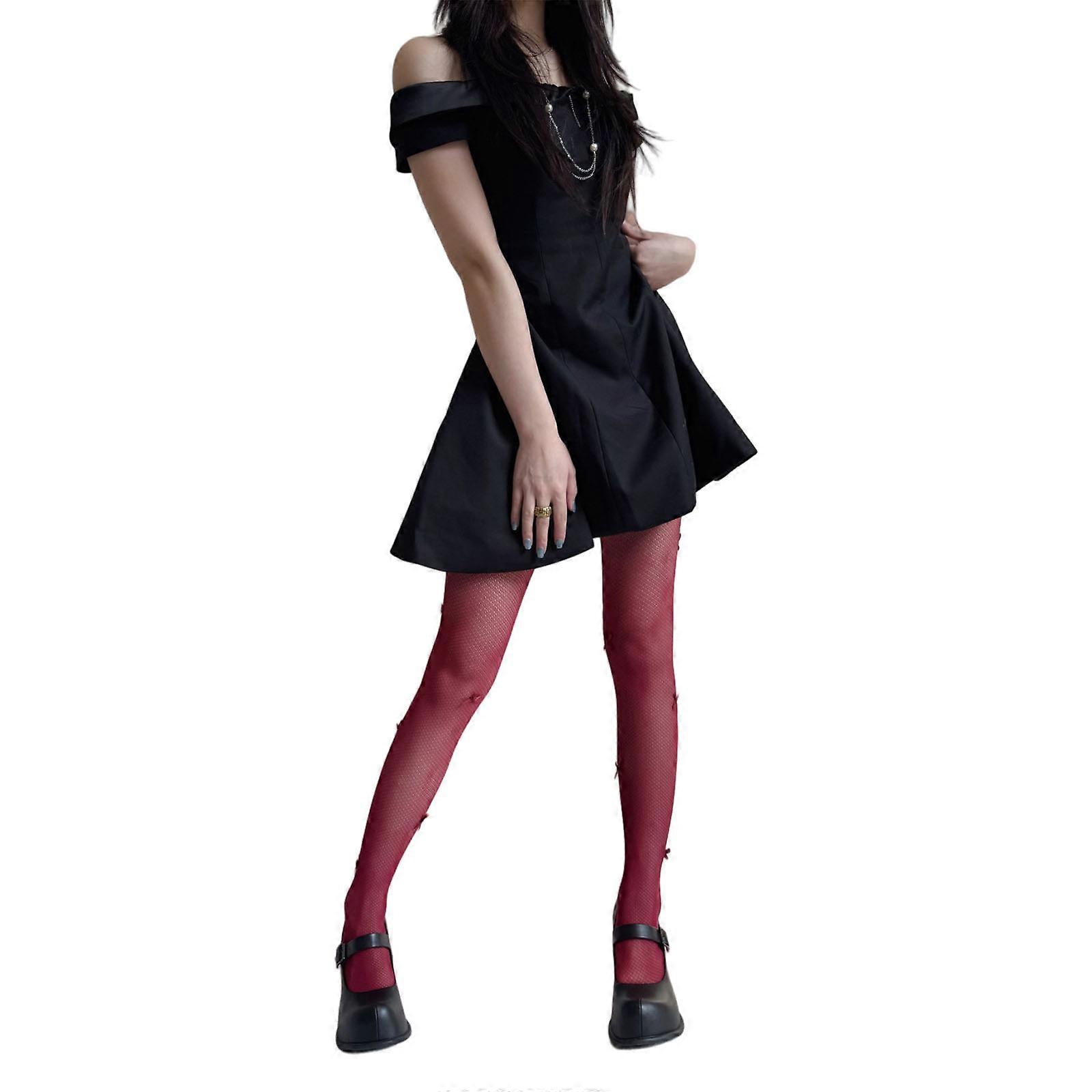 Summer Thin Sheer Patterned Stockings for Women Sweet Fishnet Stockings Pantyhose High Waist Pantyhose Tights Gifts Burgundy