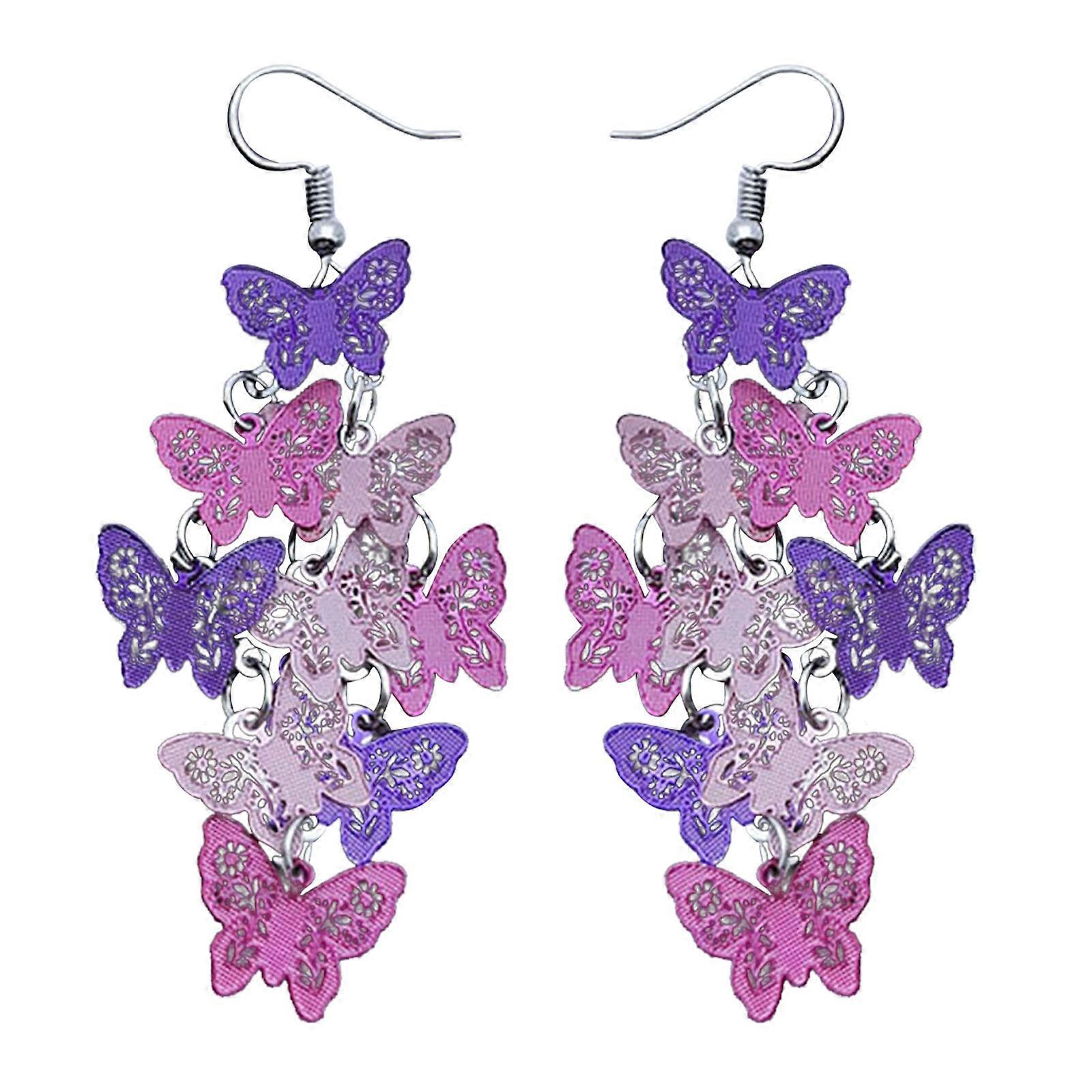 Multi-Layers Metal Butterfly Tassel Dangle Earrings For Women Wedding Trend Beach Holiday Fashion Statement Earrings Purple