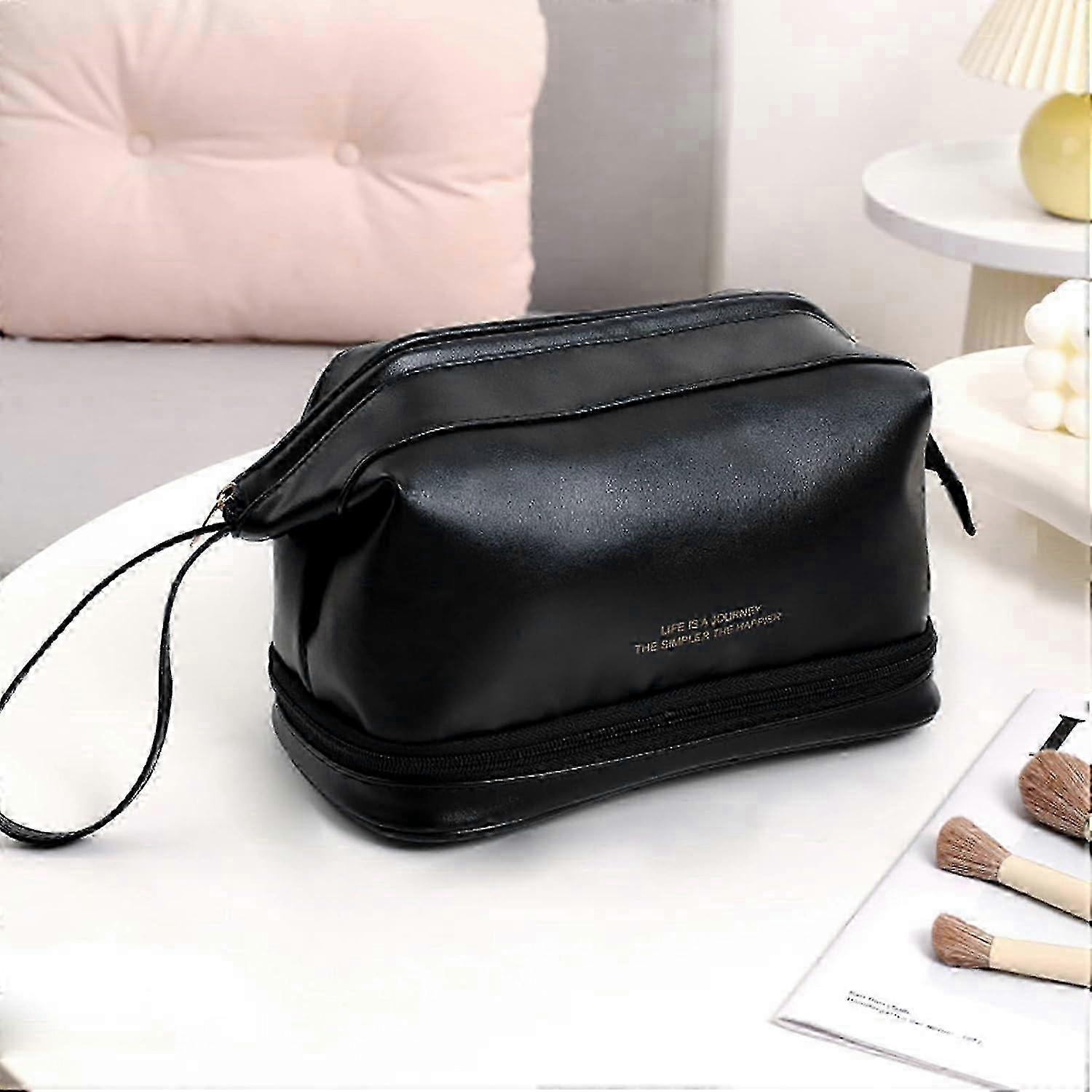 Large Makeup Bag Cosmetic Bag for Women Double Layer Travel Makeup Organizer Toiletry Pouch with Brush Organizer Waterproof Leather Cosmetic Travel Ba