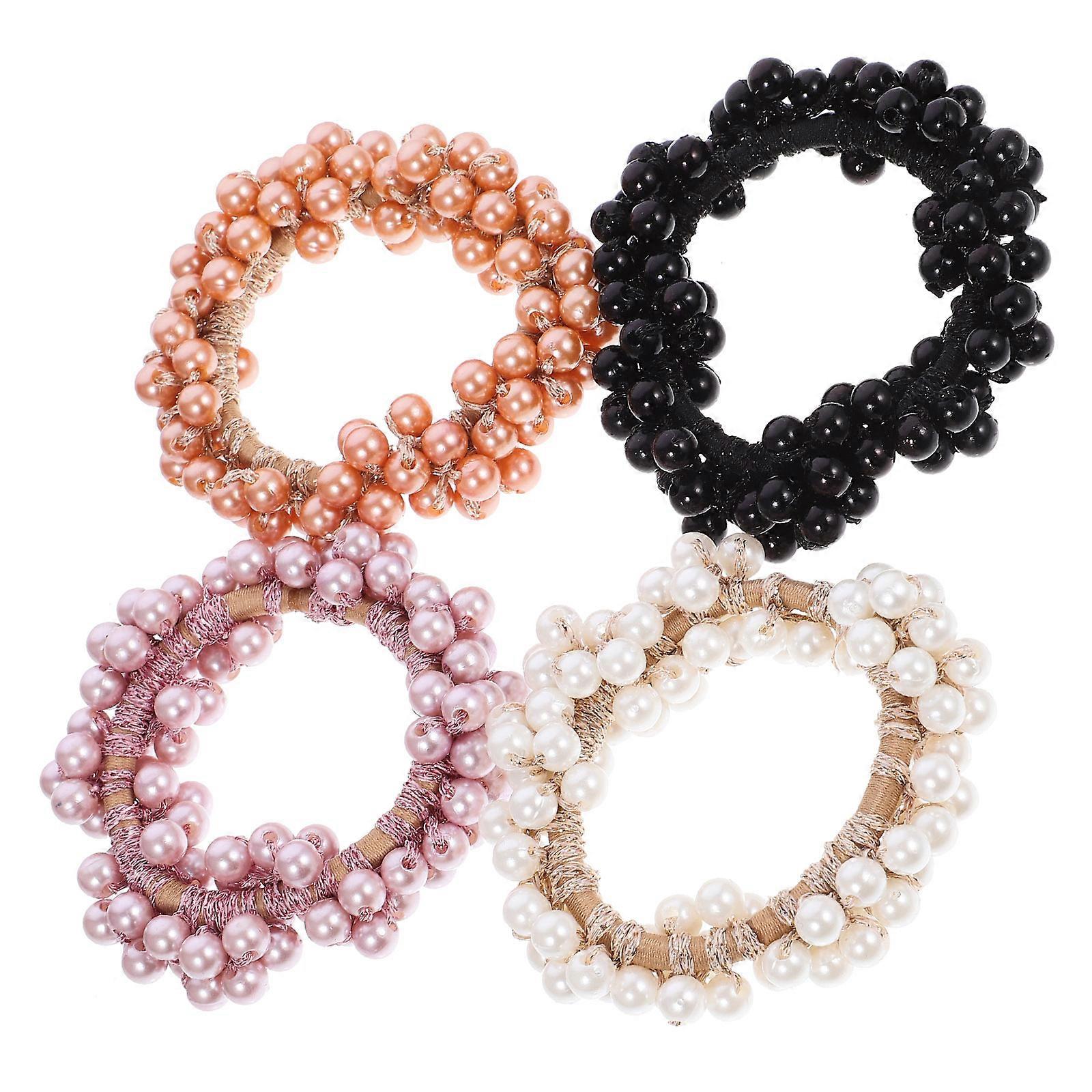 Elastic Hair Ties Ponytail Holders For Women Teen Girls Beige Small Hair Ropes 5Pcs