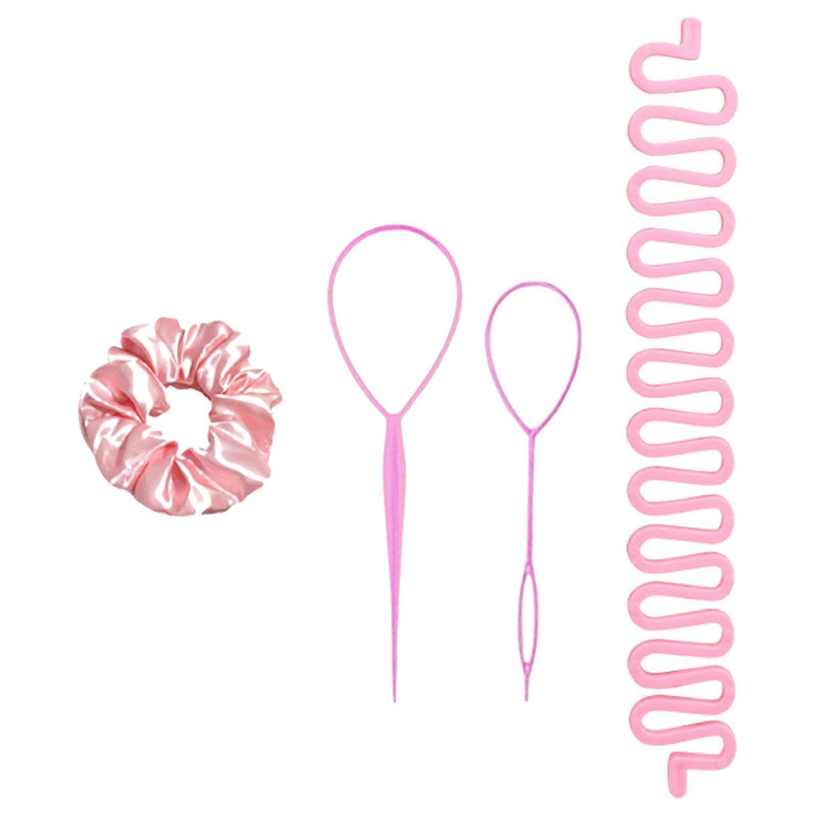Comfortable 4pcs Hair Braiding Tool Set for Women Elastic Hairbands Looping Hair Scrunchy Bobbles Hair Accessories Pink