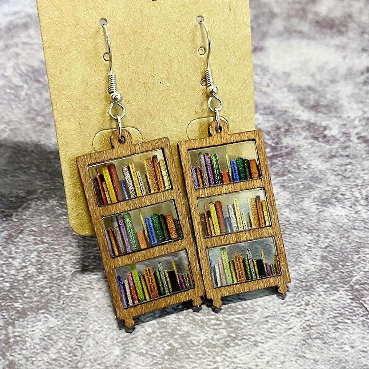 Book Earrings for Women, Rectangle Acrylic Earrings, Book Jewelry with Book Shelves Patterned as Book Themed Gifts for Book Lover