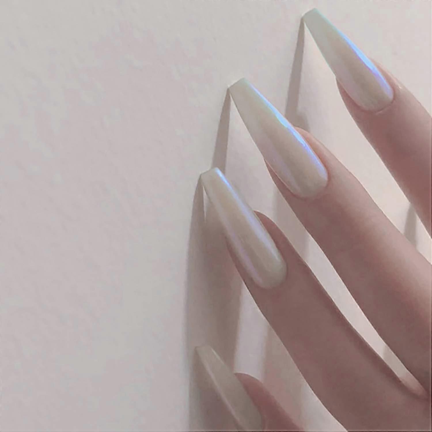 Coffin Shape Nails for Women, Aurora Design Press On Nails Coffin Extra Long, Reusable False Nails with White Stripes, 24 Pcs Medium Length Nude Pink