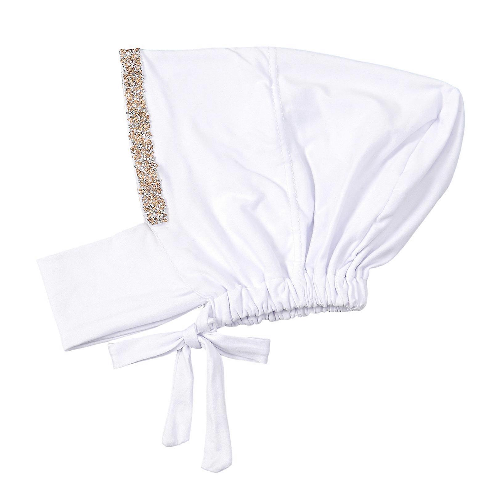 Ethnic Hijab Hat for Female Islamic Skull Hat Rhinestones Stitched Turban Hat Lady Indian Headwrap Daily Use Headcover White