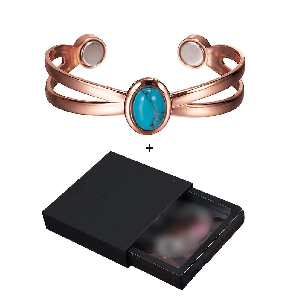 Magnetic Copper Bracelets For Women Blue Stone Adjustable Cuff Copper Magnetic Bracelet Arthritis Cross Healing Energy Bangle
