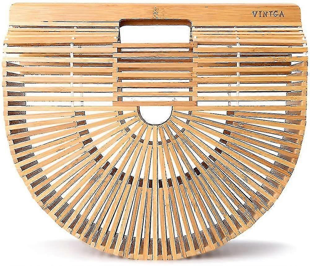 Bamboo Bags For Women Summer Straw Bags Wooden Beach Purses Basket Handle Handbags