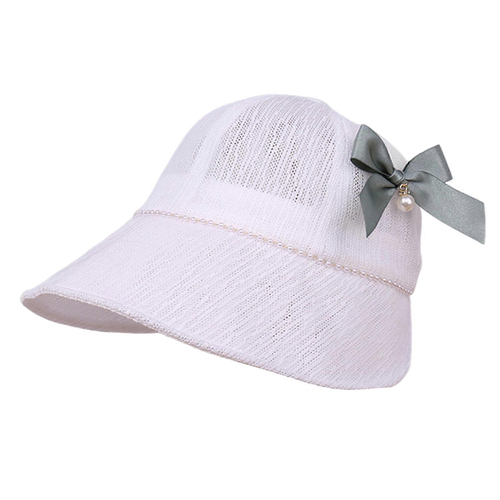 Yarn Baseball Caps for Woman Beach Getaways Tea Party Baseball Caps Bowknot Decals Visors Hat Adult Holiday Visors Hat White