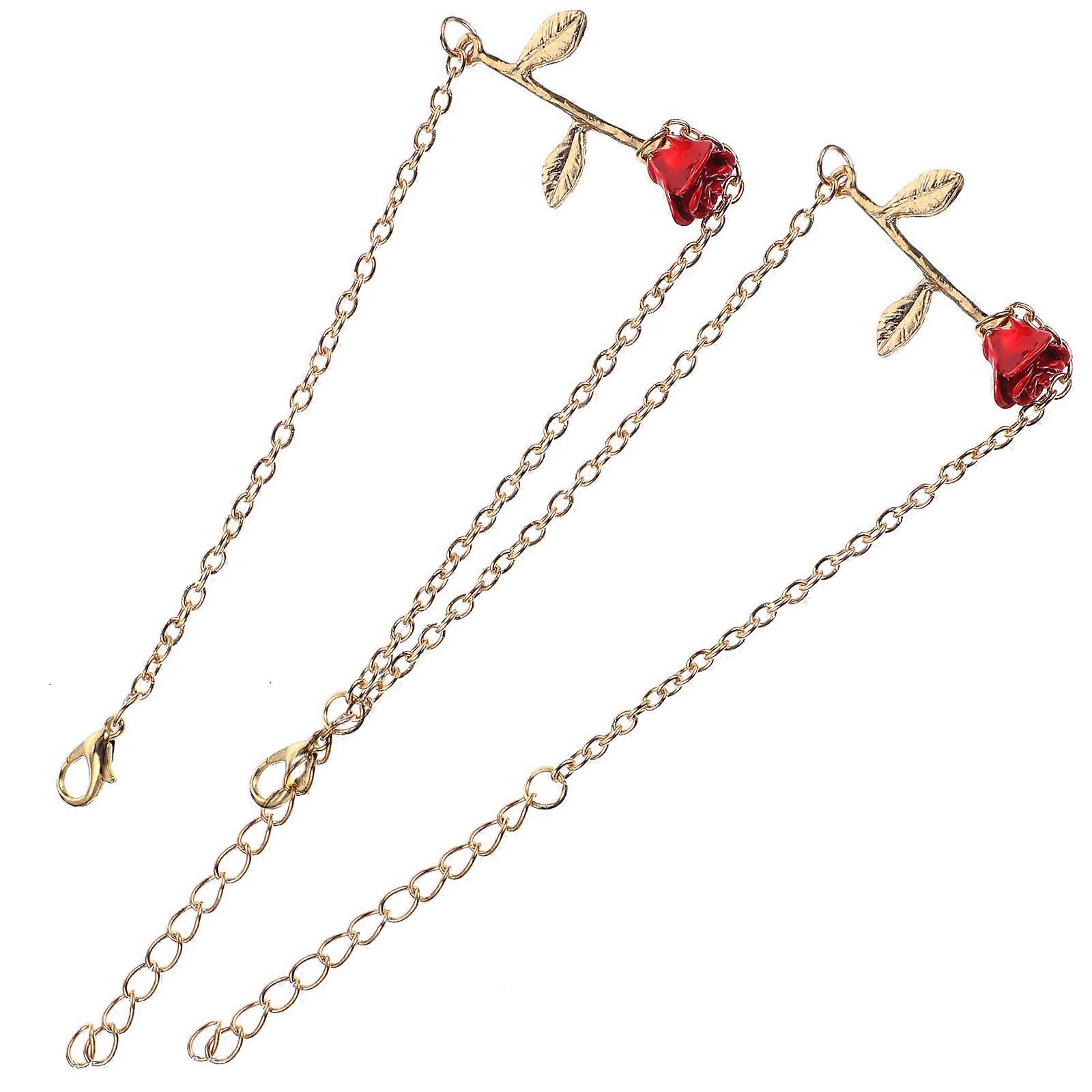 Durable Alloy Rose Bracelet for Women Adjustable and Elegant Fashion Jewelry Golden 2pcs