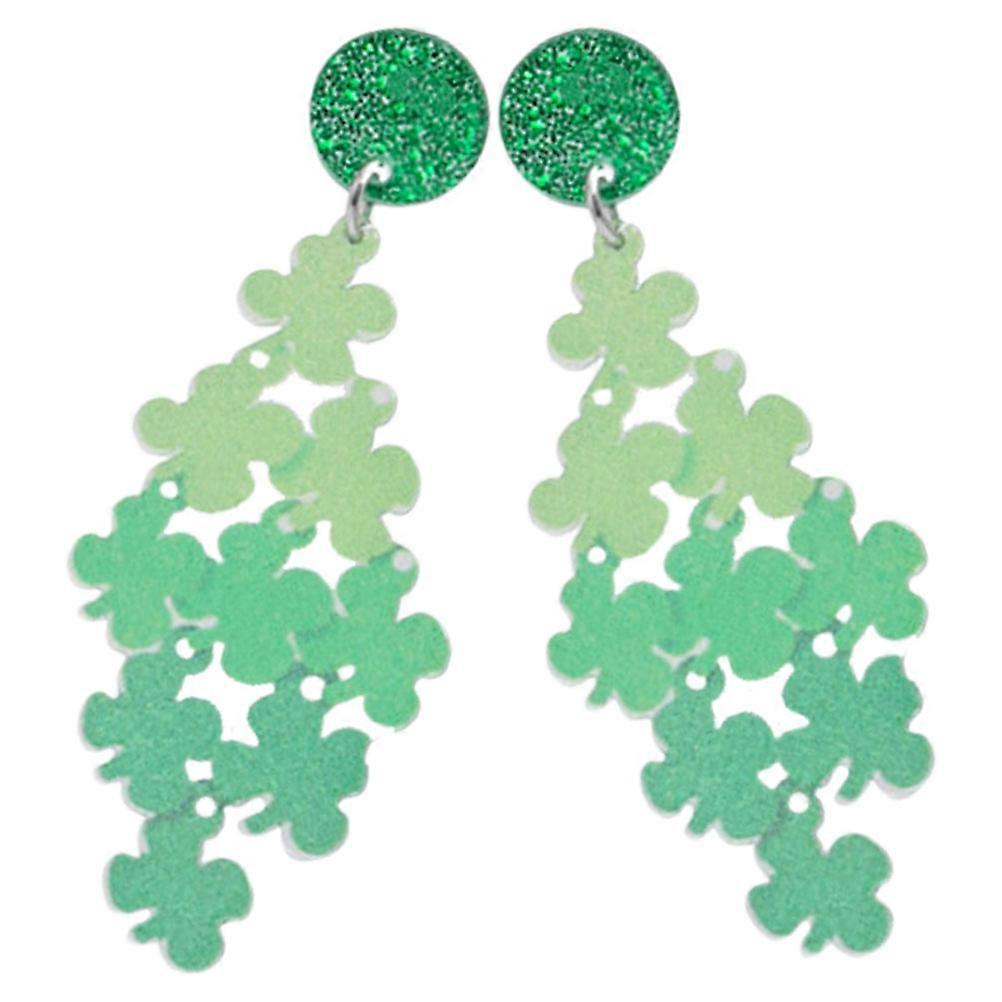 St. Patrick's Day Shamrock Earrings for Women – Lightweight Acrylic Dangle Earrings with Green Hat Gradient Design, Festive Statement Jewelry for