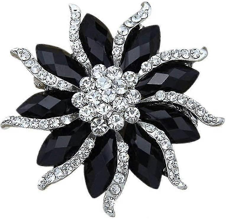 Blossom Flower Brooch For Women, Black Crystal, Rhinestones, Pin, Practical And