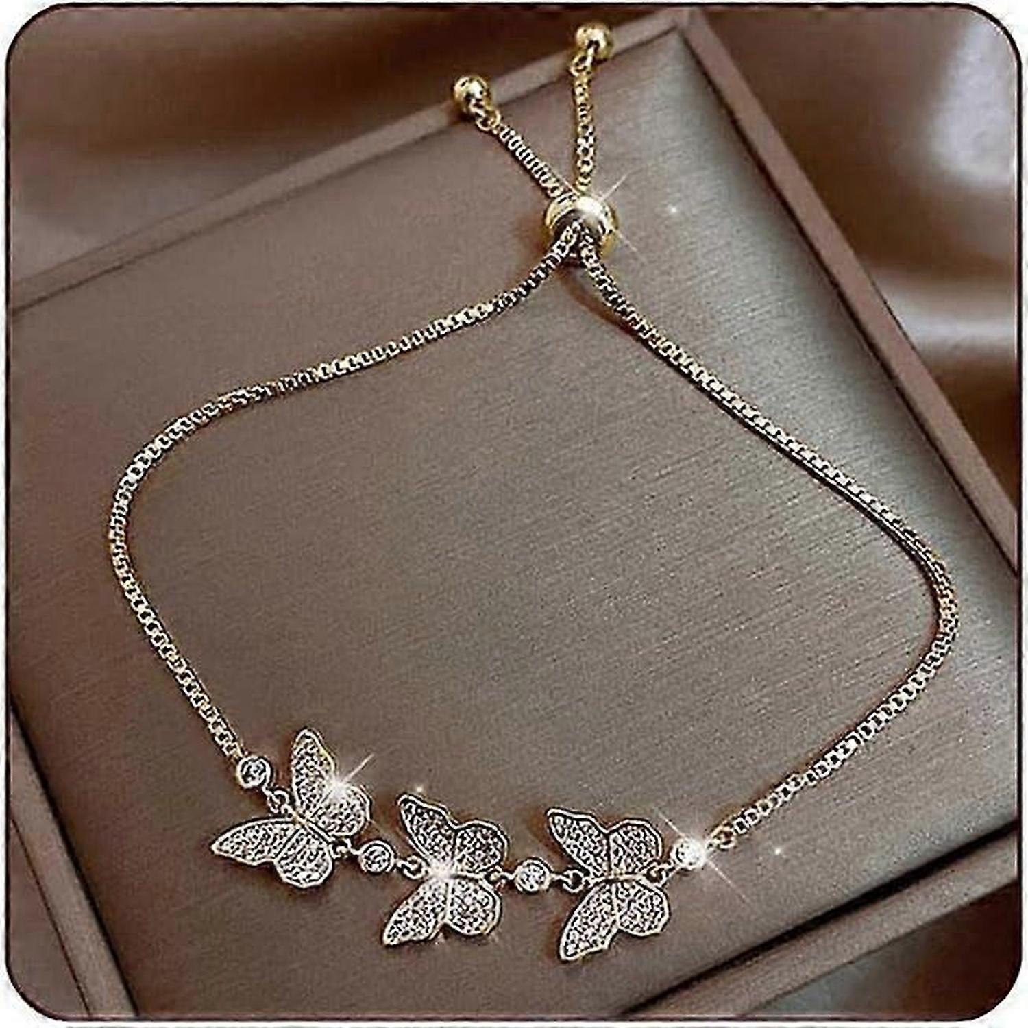 Butterfly Bracelet for Women Adjustable Elegant Cubic Zirconia Butterfly Charm Bracelets Birthday Mother's Day Graduation Gifts