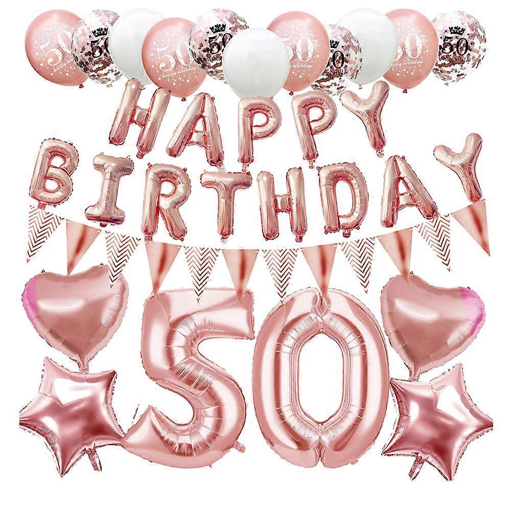 Birthday Decoration For Women Balloon Set For Party Delicate Birthday Themed Balloons Kit Rose Gold 50 Years Old Style Wall Door Window Decor 1Set