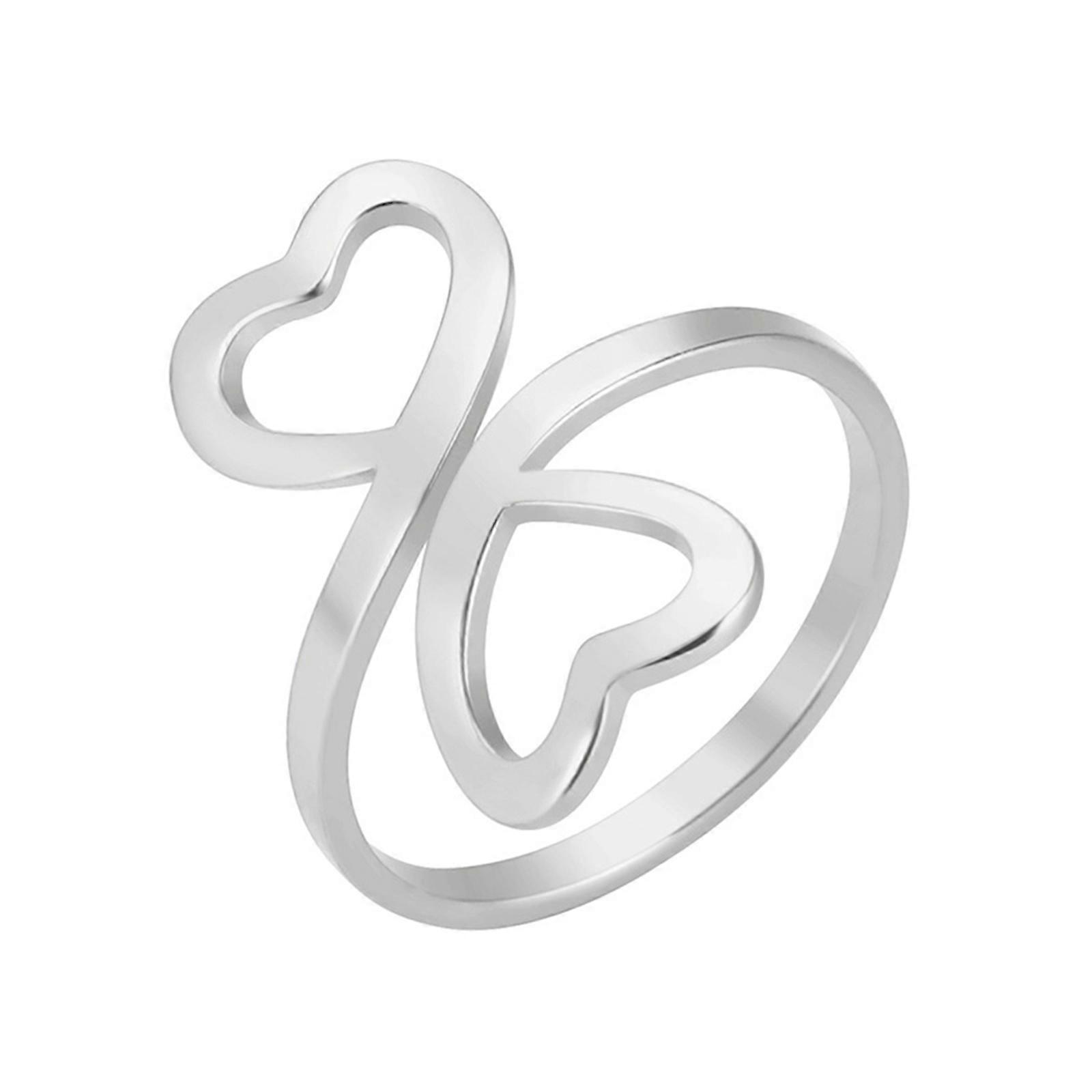 Minimalist Double Heart Rings for Women Mens Stainless Steel Open Finger Rings Fashion Jewelry Engagement Gift for Lover