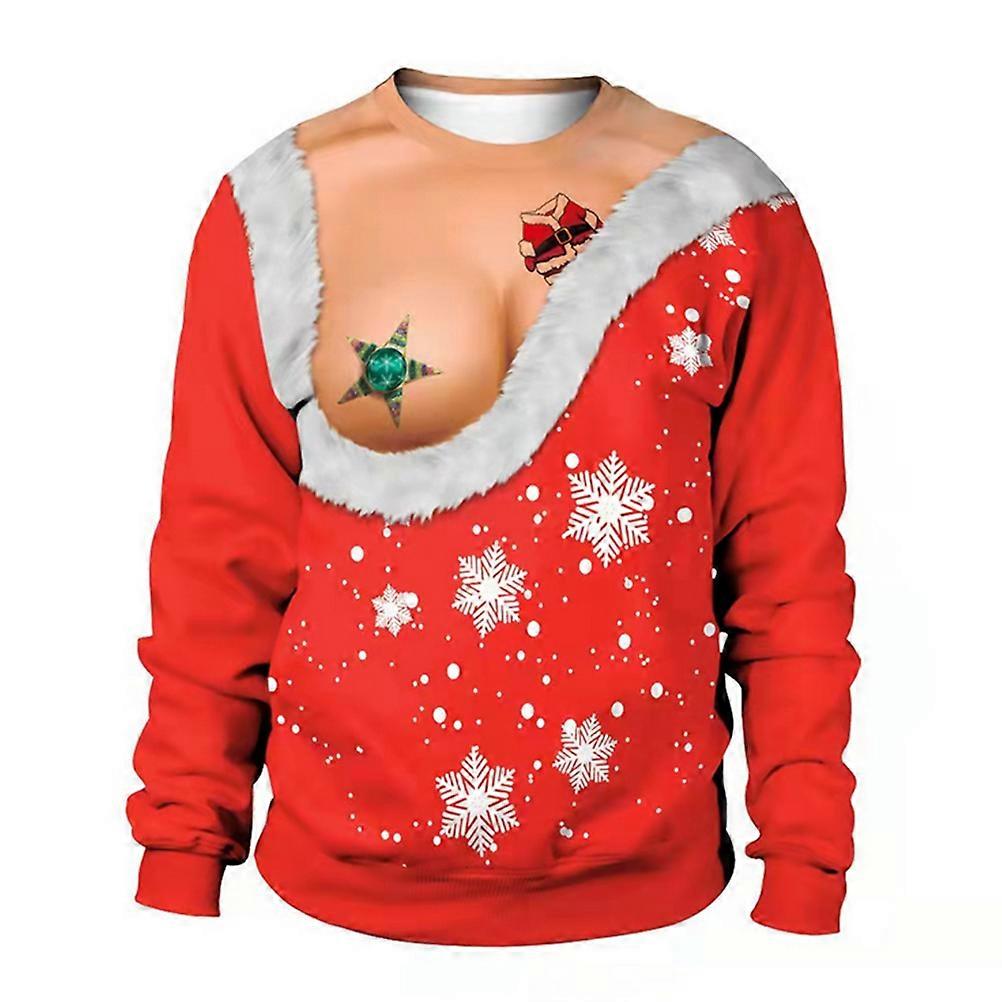 Ugly Christmas Sweater T Shirt for Women 3D Digital Printing Crewneck Pullover Sweatshirts for Christmas Holiday Party YEMAA