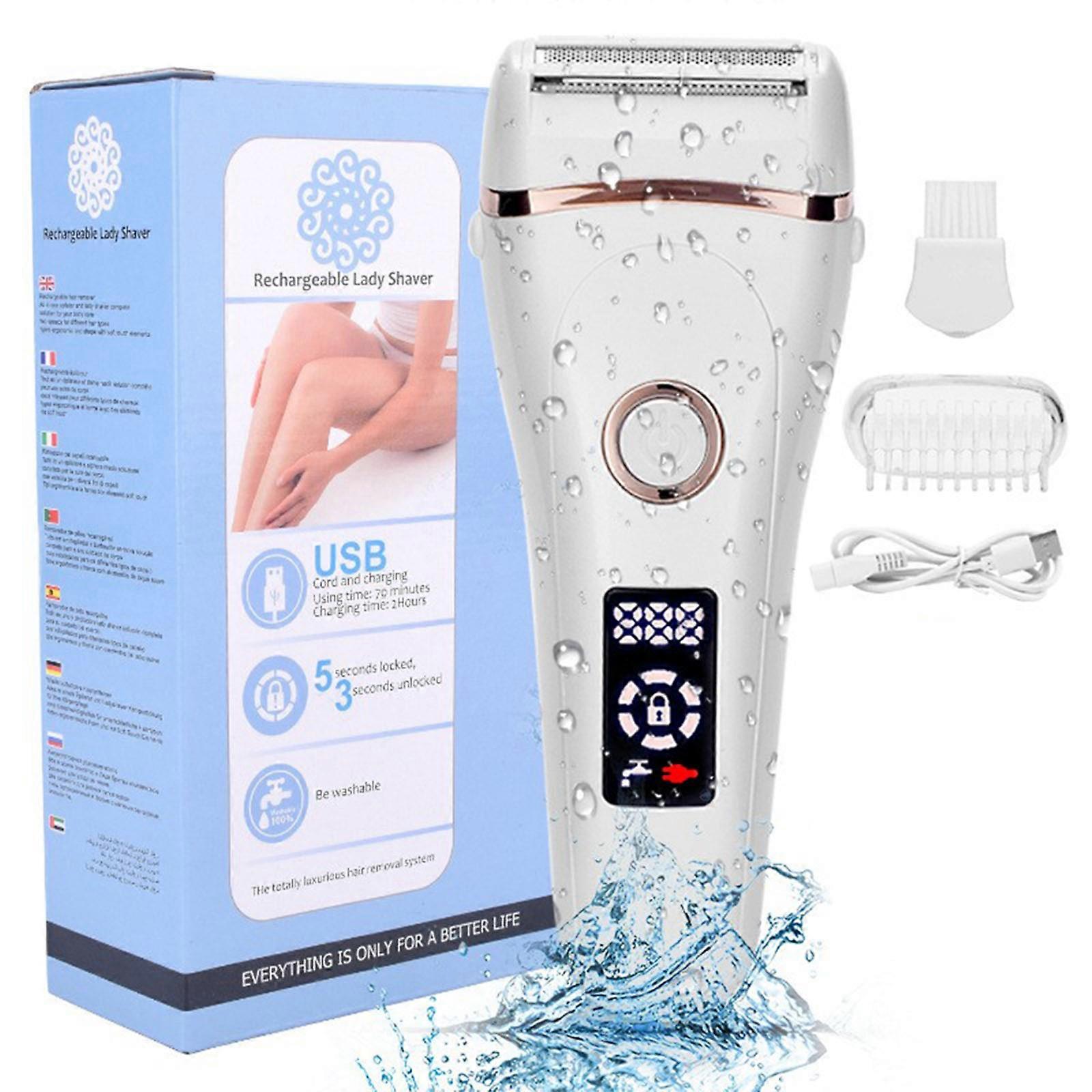 Features: LCD Display & Travel Lock: The LCD display could intuitively display battery and working status; One-Key Lock (5 second locked and 3 second unlocked), you can lock the epilator to avoid unexpected starting up on a trip. Painless & Blades: The hypo-allergenic stainless steel blade help to achieve close but safe & comfortable shaving painless or irritation worries on any sensitive skin, give you a excellent shaving experience. Safety Wet & Dry Shave: Waterproof Design makes it safe to use even in bath or shower. Multiple Functions: It can be used on your face, arms, legs, body, armpits and bikini lines etc in minutes. Small ergonomic size for easy use at home or on travel. USB Quick Charging: 2 hours full charging allows 70 minutes working. Specifications: Material: ABS Weight: 223g Size: As picture shows Voltage: 5V Charging Mode: USB Charging Battery Information: 600mA Lithium Battery Rated Power: 5W Charging Time: about 120 minutes Use Time: about 70 minutes Package Includes: 1x Electric Shaver 1x English Manual 1x USB Cable 1x Brush note: 1.Please allow 1-2cm errors due to manual measurement, make sure that you do not mind before you order. 2.Due to the difference between different monitors, the picture may not reflect the actual color of the item.