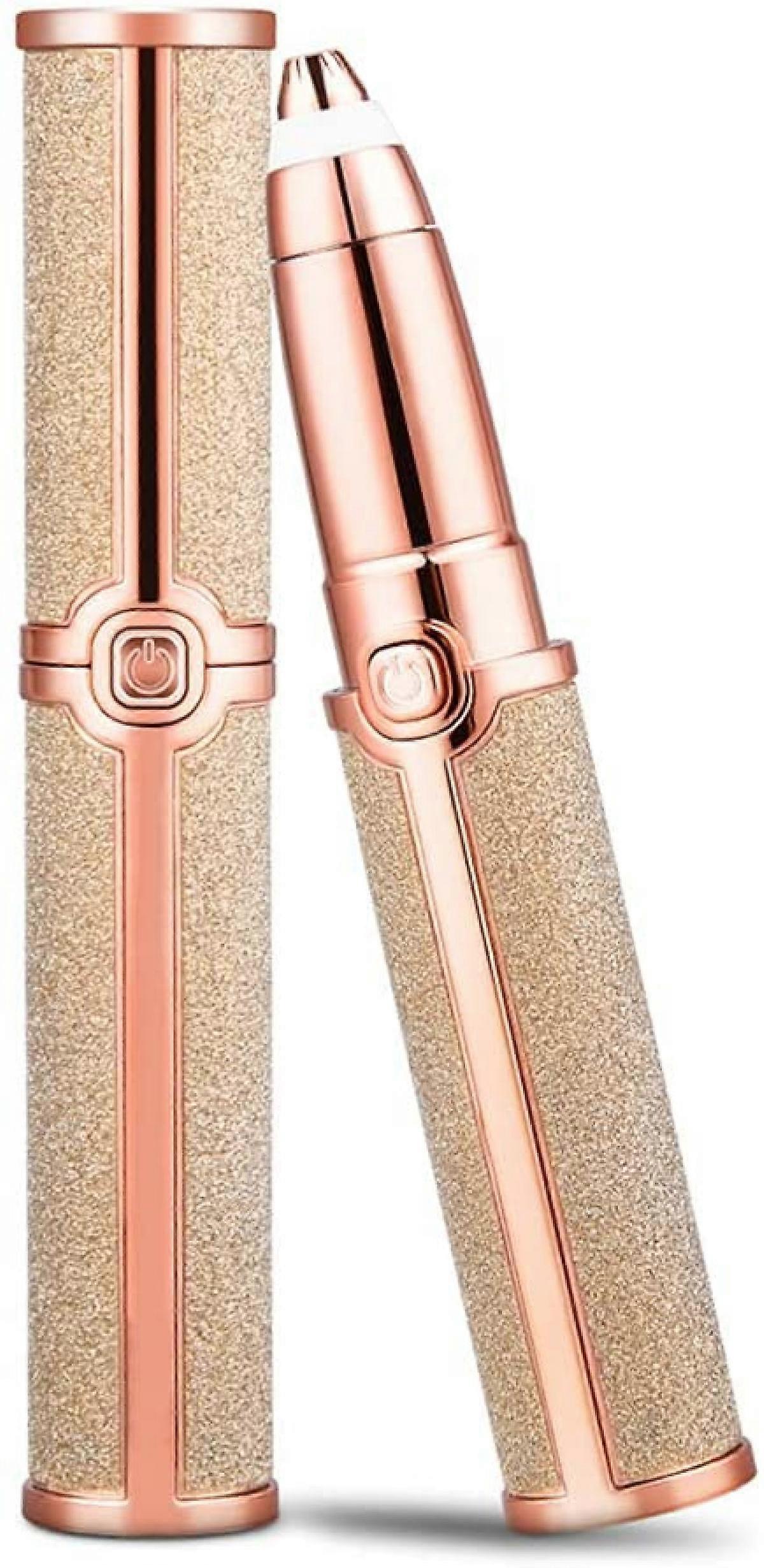 2-1 Electric Eyebrow TrimmerGentle, Painless Electric epilator is suitable for daily use to keep up with the hair regrowth and leave it smooth, especially designed to use on eyebrow, upper and lower lip, cheeks, chin and neck. Go slow with circular movements and it will do the job. Smoothness & PrecisionUsing micro-magnetic stainless steel material, Double-knife thin round blades, with high-speed rotating motor to capture eyebrows in multiple directions and lengths, making it easier to trim eyebrows without resistance. USB Rechargeable with LED LightThe eyebrow razor is USB rechargeable, environmentally friendly and economical. Built-in LED light, the soft light helps see the more clearer when trimming, so that you can trim perfect eyebrows easily. Easy to useThe Women Depilator arc shape is more in line with the contour, the 360 knife net trims the eyebrows more cleanly, and the shape is formed in one stroke. Lipstick Size DesignSmall and exquisite design, you can put it in your bag and carry it with you. The Champagne gold color body make you happy every day. This is a good gift for yourself, your girlfriend or your family,perfect for Christmas, Birthday, Mothers day.
