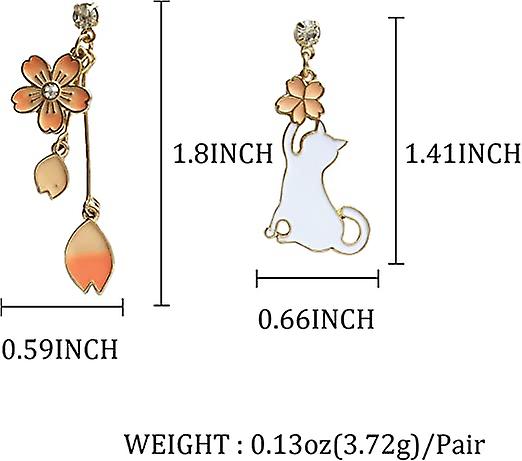 Asymmetrical Earrings For Women Playful Cat Flower Earrings Beautiful Petals S925 Silver Needle Earrings For Women Gift For Wedding Valentine's Day An