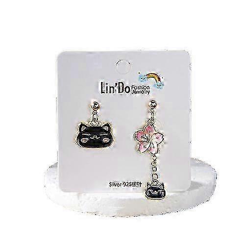 Funny Black Cat Earring For Women Girl Cute Animal Kitten Flower Love Heart Asymmetric Earrings Festival Party Christmas Jewelry