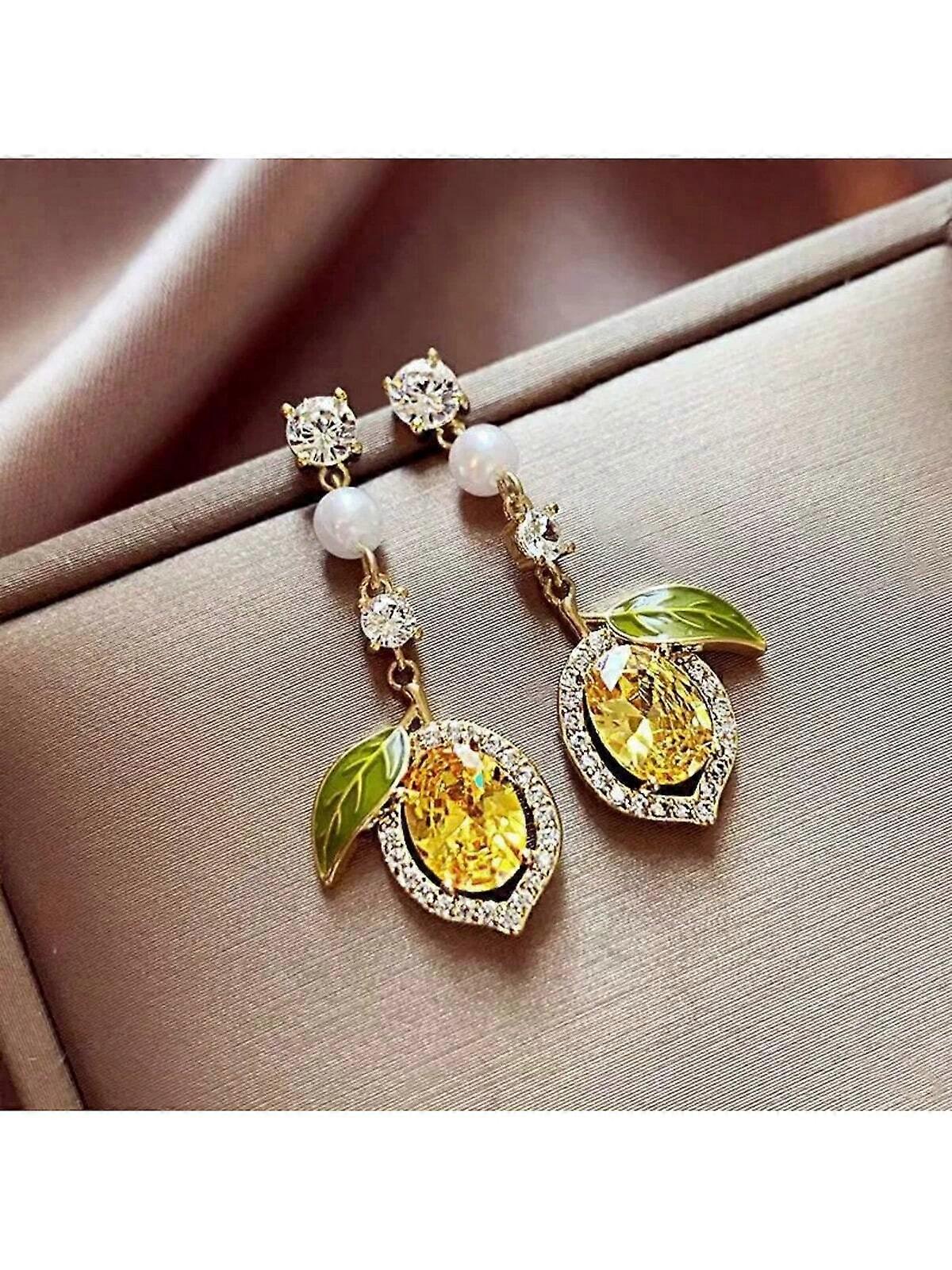 1 Pair Lemon Shaped Rhinestone Earrings For Women Unique Design High End Elegant Earrings