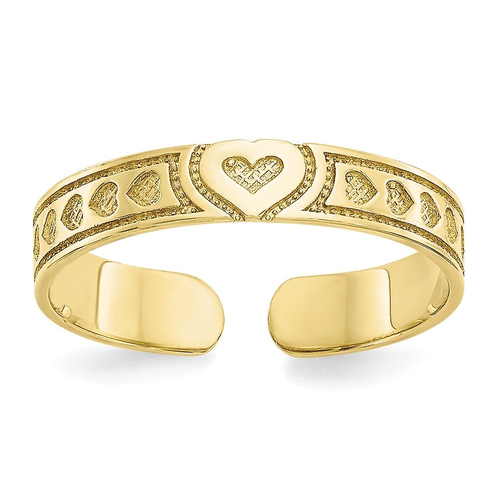 10k Yellow Gold Textured Polished Love Heart toe ring-toe ring for Women - .6 Grams