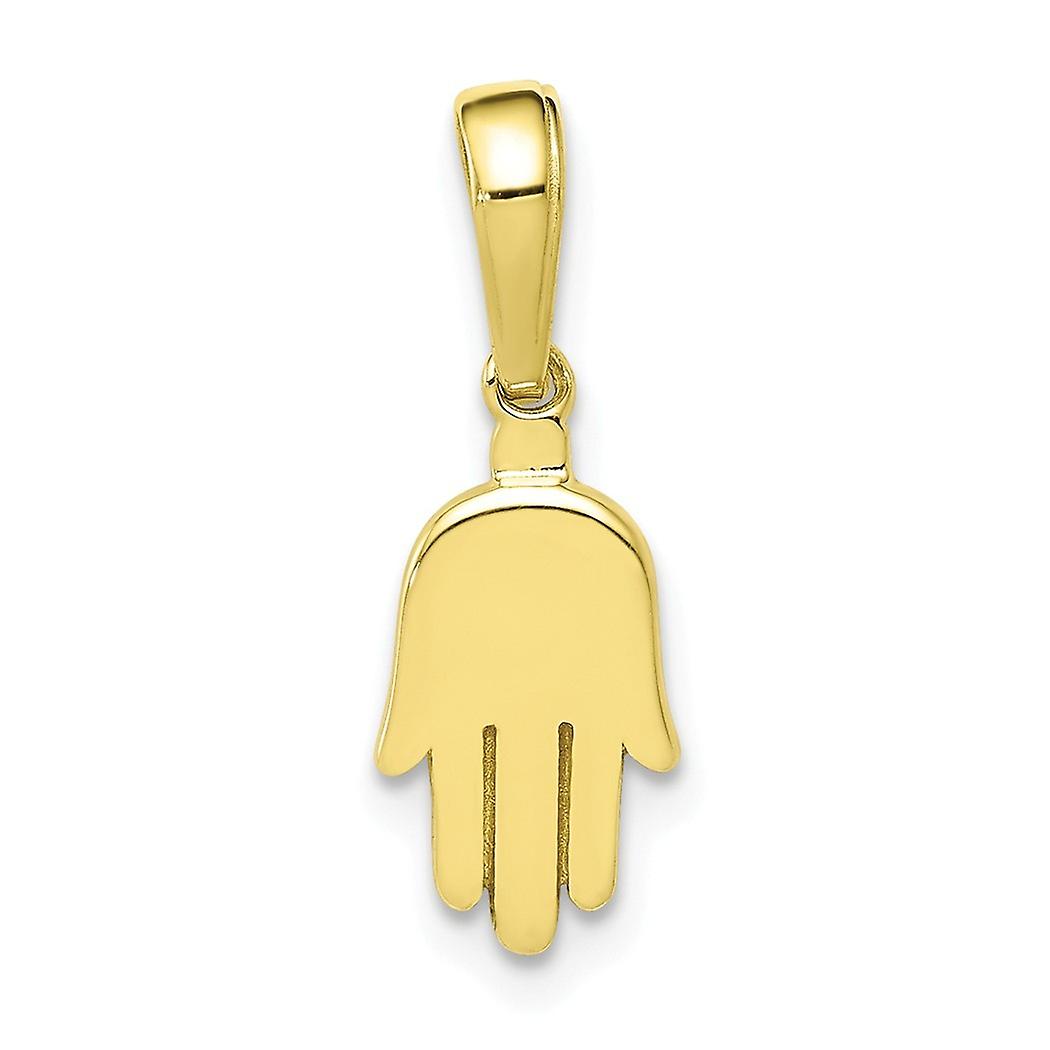 10k Gold Small Solid Hamsa Pendant Necklace 18x12mm Wide-Pendant for Women - .7 Grams