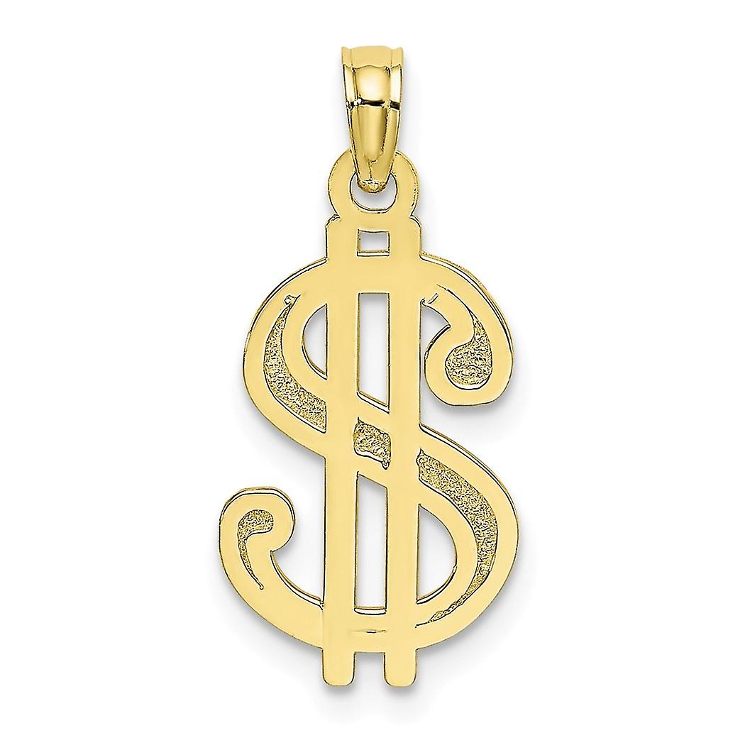 10k Gold Dollar Sign Textured Charm 21.7x10.6mm Wide Pendant Necklace for Women - .9 Grams
