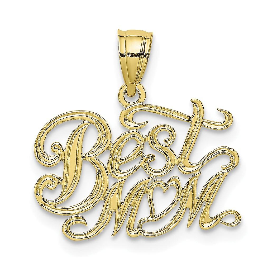 10k Gold Best Mom Pendant Necklace 33.25x17mm Wide-Pendant for Women - .6 Grams